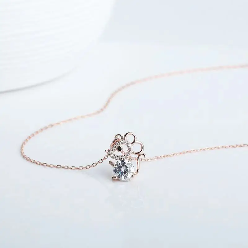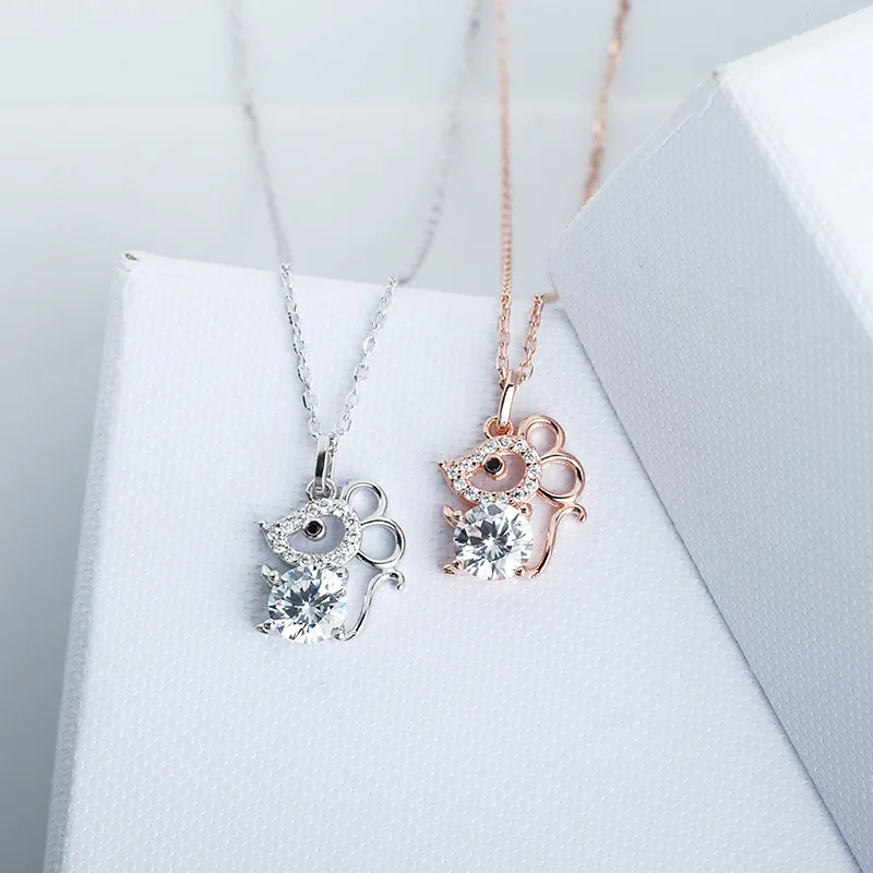 S925 Стерлинговое серебро кулон в виде мыши Полный Кристалл Циркон натальный год мышь пункт Корейская версия Милая мышь из зодиака подарок