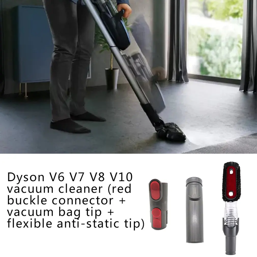 Features: Easy to install, durable more than ever. Replacement for the old or damaged part of the machine. It can replace the old one or broken one. Attachments tools kit for Dyson. High quality, durable for use. Suitable for Dyson V6 V7 V8 V10 Vacuum Cleaner Spare Parts . Specifications: Material: plastic Color: gray Size: 300*70*120mm Package Includes: 1 x Vacuum Bag Connector 1 x Flexible Anti-static Suction Connector 1 x Adapter Connector(red buckle)