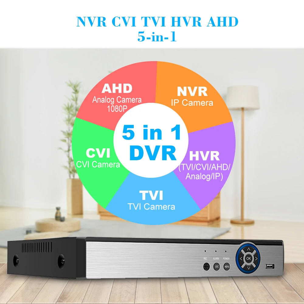 Камера видеонаблюдения, 8 каналов, 1080P, Full HD, Hybrid, AHD, ONVIF, IP, аналоговый, TVI, CVI, DVR, цифровой видеорегистратор, P2P, дистанционный мониторинг телефона для домашнего офиса, комплект системы видеонаблюдения (без HDD) штепсельная Вилка американского стандарта