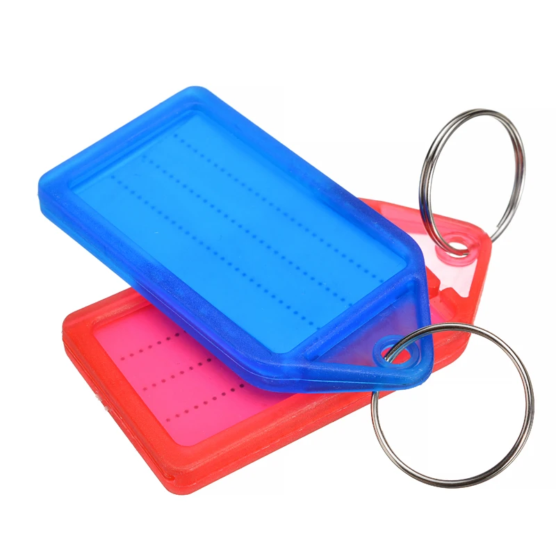 Эти цветные пластиковые бирки для ключей поставляются с белая бумажная карточка вставка для записей.
