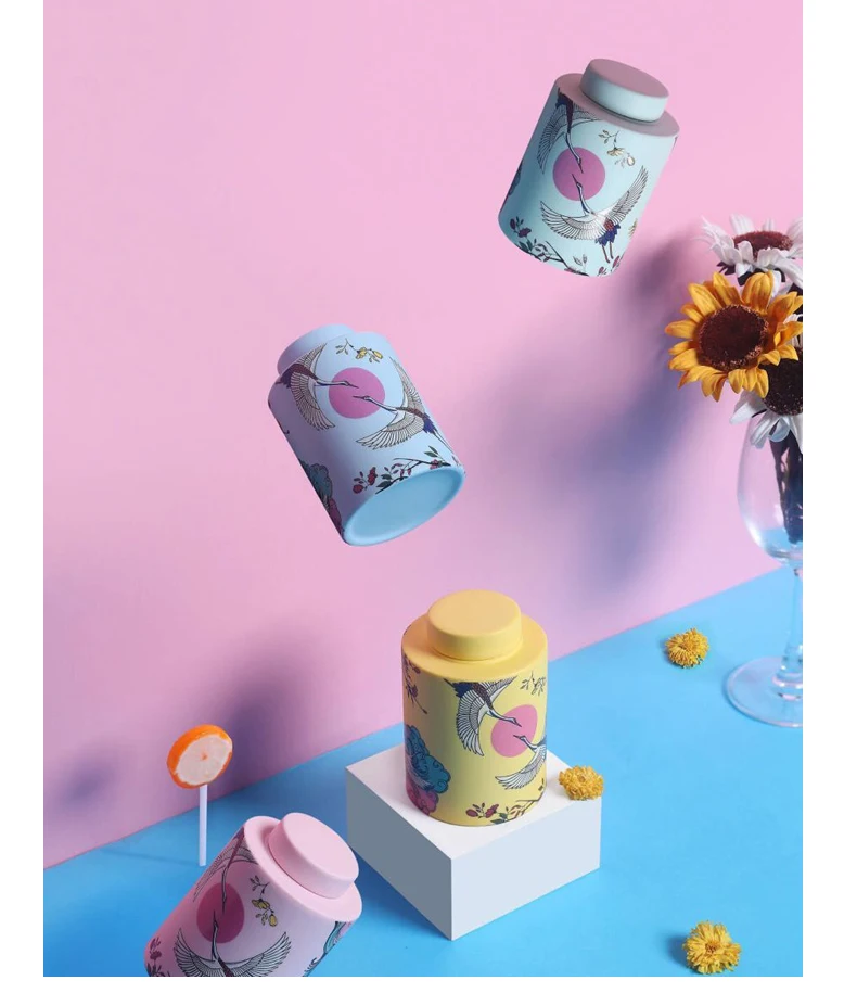 Ceramic Macaron Color Tea Pot Girl Series Flower Tea Candy Storage Tank Sealed Jar Tea Ceremony Accessories Teaware Free Shipping
