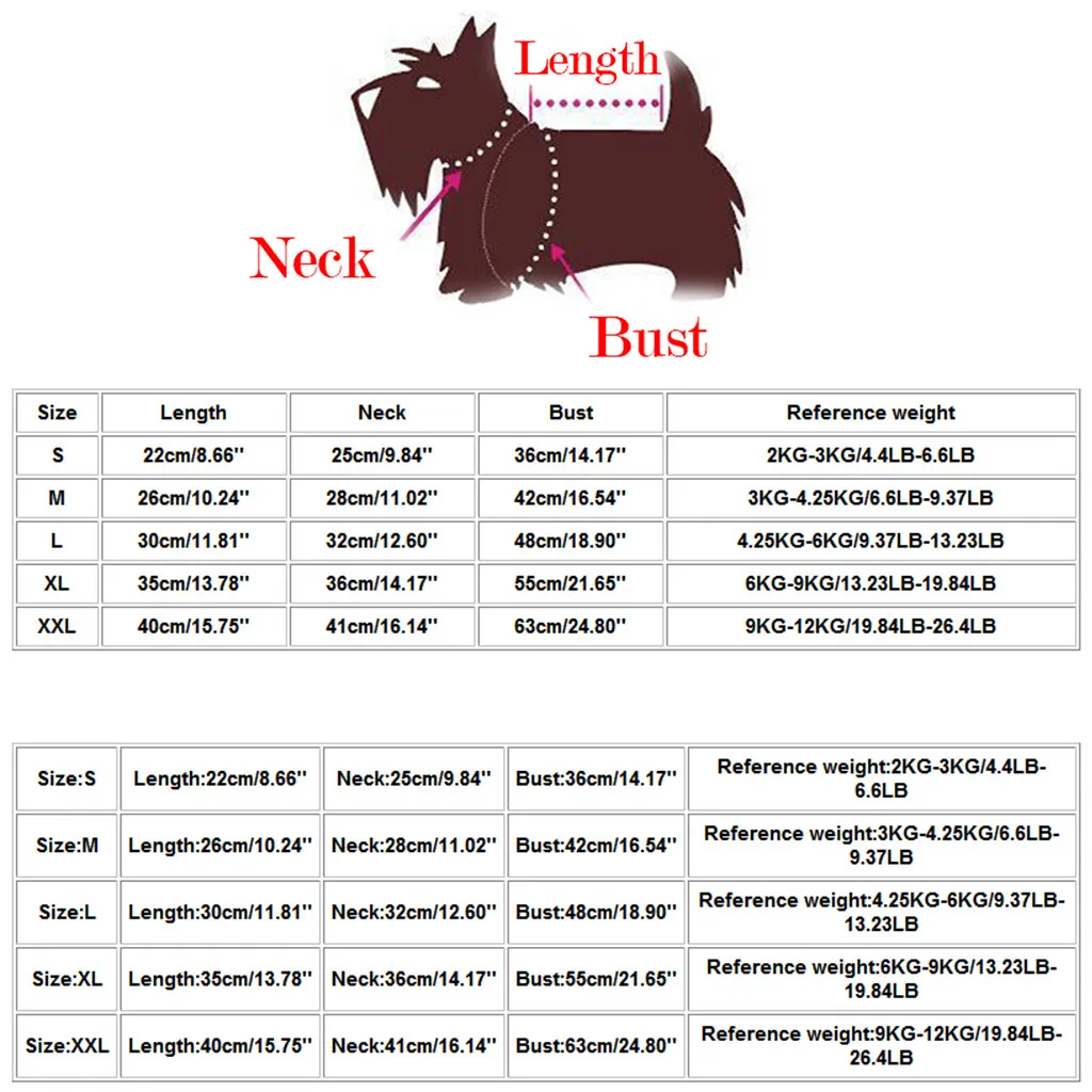 Размеры Длина Шеи Обхват груди Контрольный вес S 22 см/8,66'' 25 см/9,84'' 36 см/14,17'' 2 кг-кг/3 кг/4.4LB-6.6LB М 26 см/10,24'' 28 см/11,02'' 42 см/16,54'' 3 кг-4,25 кг/6.6LB-9.37LB L 30 см/11,81'' 32 см/12,60'' 48 см/18,90'' 4,25 кг-6 кг/9.37LB-13.23LB XL 35 см/13,78'' 36 см/14,17'' 55 см/21,65'' 6 кг-9 кг/13.23LB-19.84LB XXL 40 см/15,75'' 41 см/16,14'' 63 см/24,80'' 9 кг-12кг/19.84LB-26.4LB