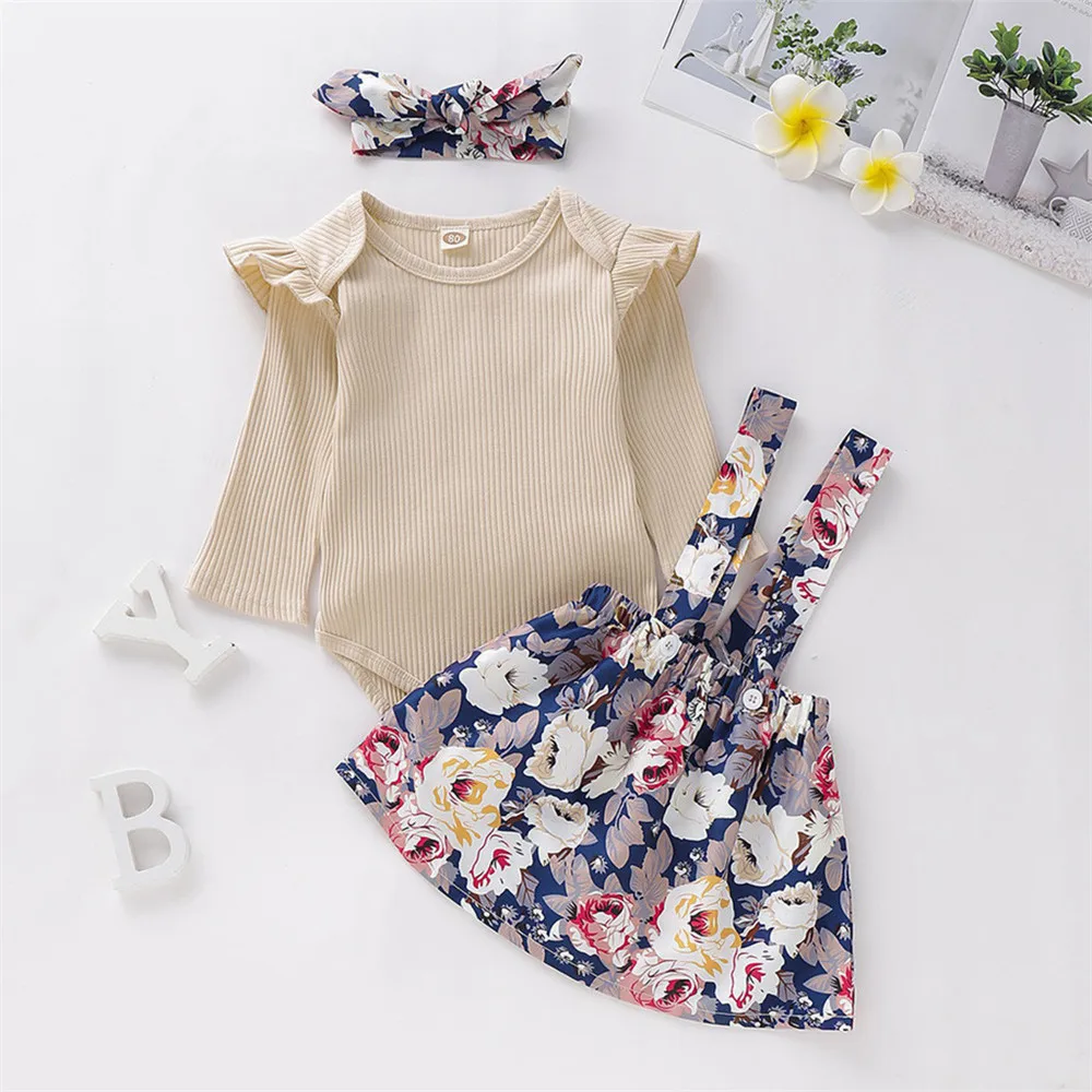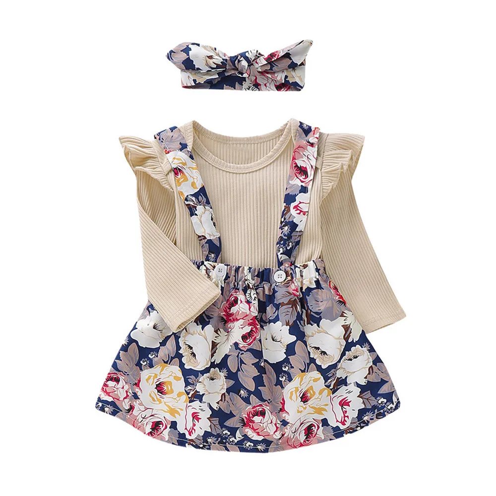 Однотонный комбинезон для маленьких девочек, боди + платье на подтяжках с цветами Юбки + повязка на голову