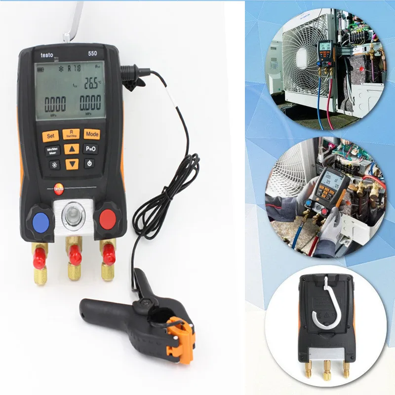 Testo 550 цифровой манометр для охлаждения коллектора с 2 зажимом с 3 наконечниками трубка хладагента зонд метр