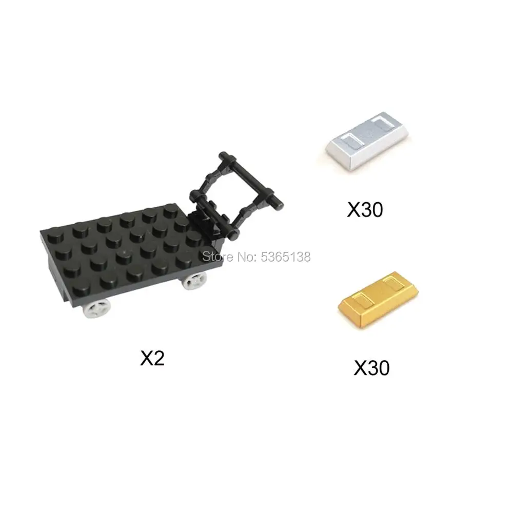 Этот набор включает 30 золотых слитков, 30 серебряных слитков и 2 автомобиля, как показано ниже: