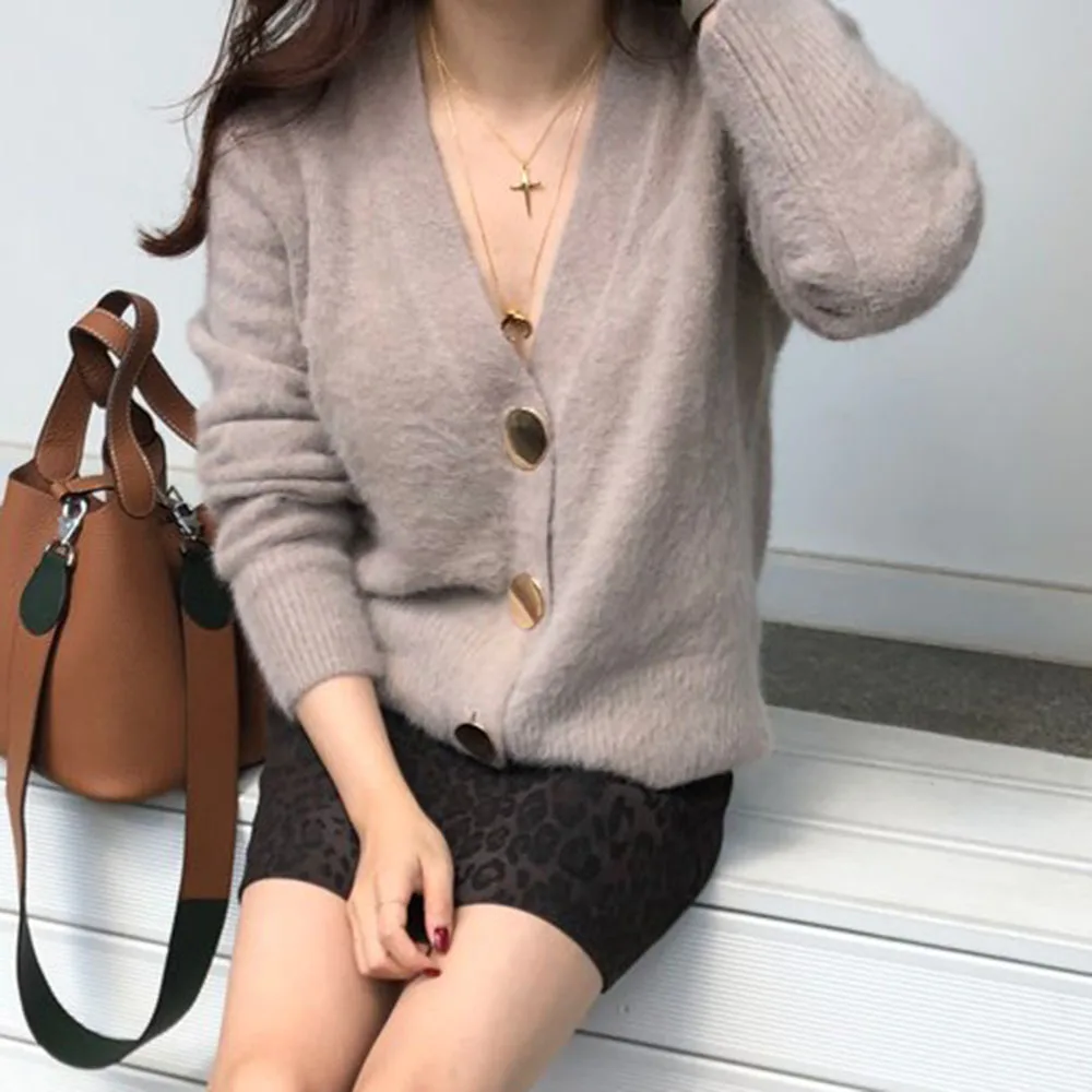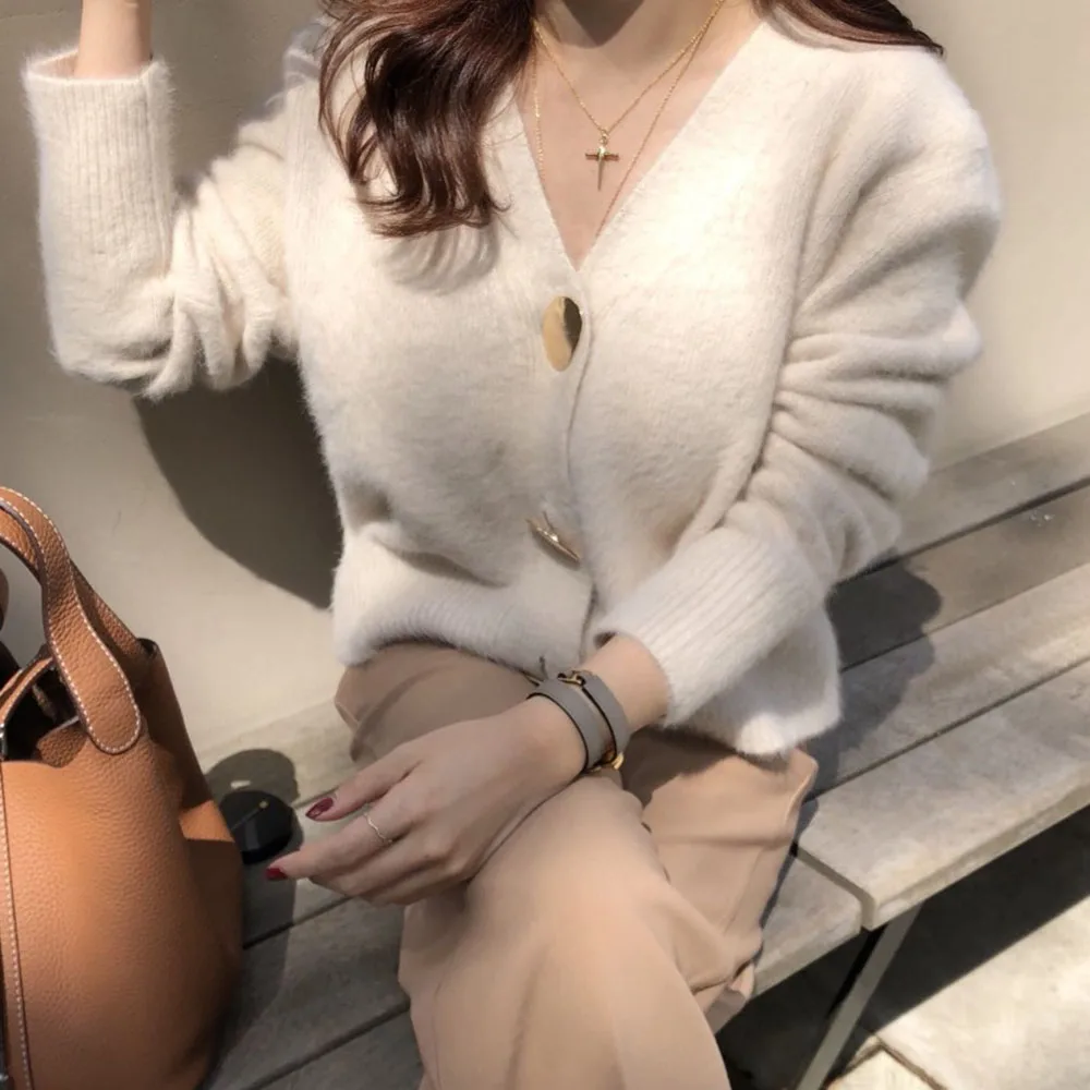 Теплый толстый свитер 2019, Женский пуловер в Корейском стиле, Свитера для отдыха, свободные, большие размеры, простые свитера с v-образным вырезом, уличные вязаные топы