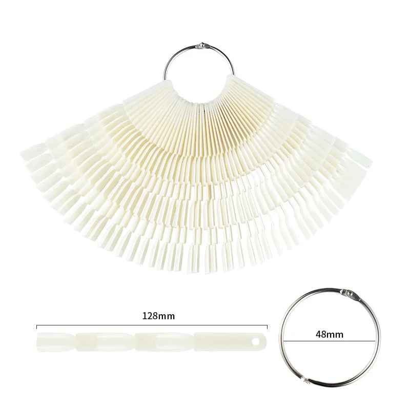 Описание: Тип товара: ложный дисплей для ногтей Количество: 50 шт. (всего 150 наконечников) Материал: Пластик Цвет: натуральный, прозрачный Посылка Содержание: 50 шт./компл. Ложные ногти дисплей (выберите ваш любимый цвет) Особенности: Веерообразный дизайн с обручем, легко носить с собой и отображать цвет и дизайн ногтей. Можно использовать в качестве модели для нового лака для ногтей, который вы купили, и других вещей о Нейл-Арте. Очень практичный дизайн ногтей/инструменты для демонстрации Подходит для профессионального, маникюрного салона и личного/домашнего использования. Примечание: Пожалуйста, учитывайте незначительные отклонения для данных измерений.