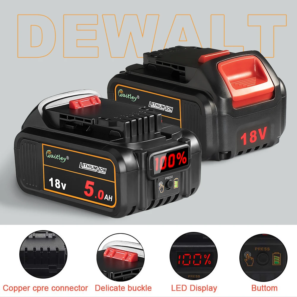 Во время зарядки отображение 100% означает, что аккумулятор полностью заряжен. Если вы хотите узнать оставшуюся мощность, нажмите кнопку под светодиодным индикатором процента. совместим с Dewalt DCS355N-XJ, DCS551N, DCS551NT, DCM563PB-XJ DCG405N, DCD796N и т. д., циркулярной пилой, лобзиком.