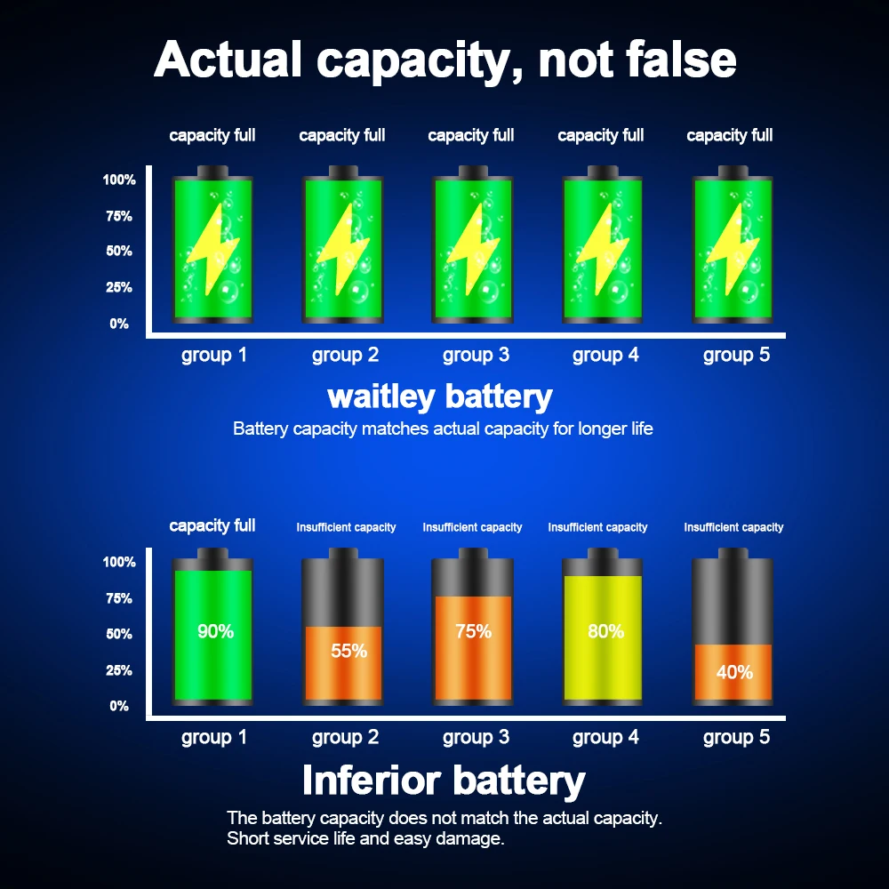 1. Емкость каждого блока батареи Waitley достаточна и сбалансирована, и не будет чрезмерной разрядки или перезарядки.