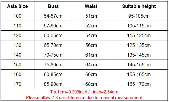 Таблица размеров приведена только для справки! Размеры в основном соответствуют росту детей. Пожалуйста, измерьте рост вашего ребенка и сравните его с таблицей размеров, чтобы выбрать размер. Если вы полны, пожалуйста, выберите на 1 или 2 размера больше.