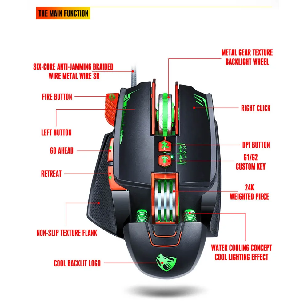 Adjustable DPI for 1200/1800/2400/3200, providing flexible gaming effect.
