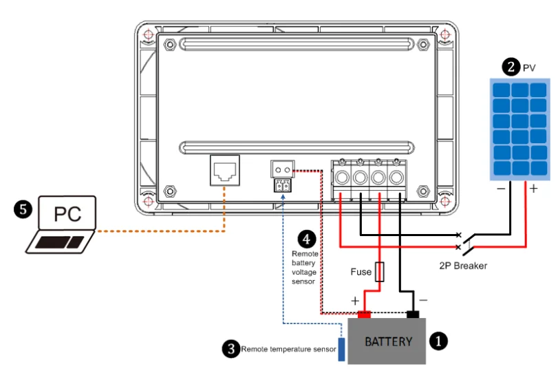 9. Порт связи RS485 10. Порт датчика напряжения батареи