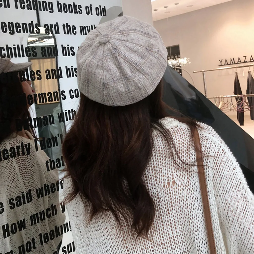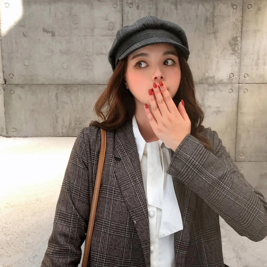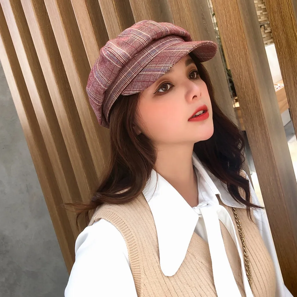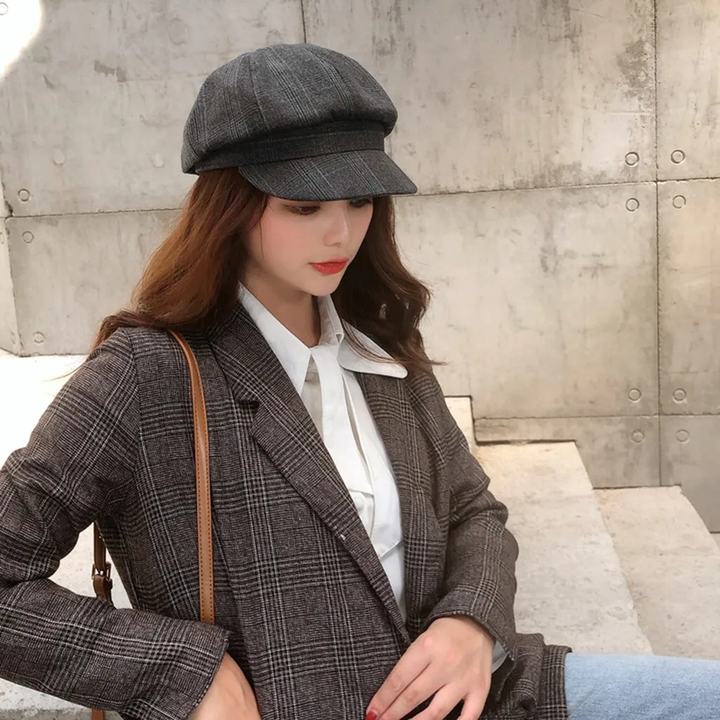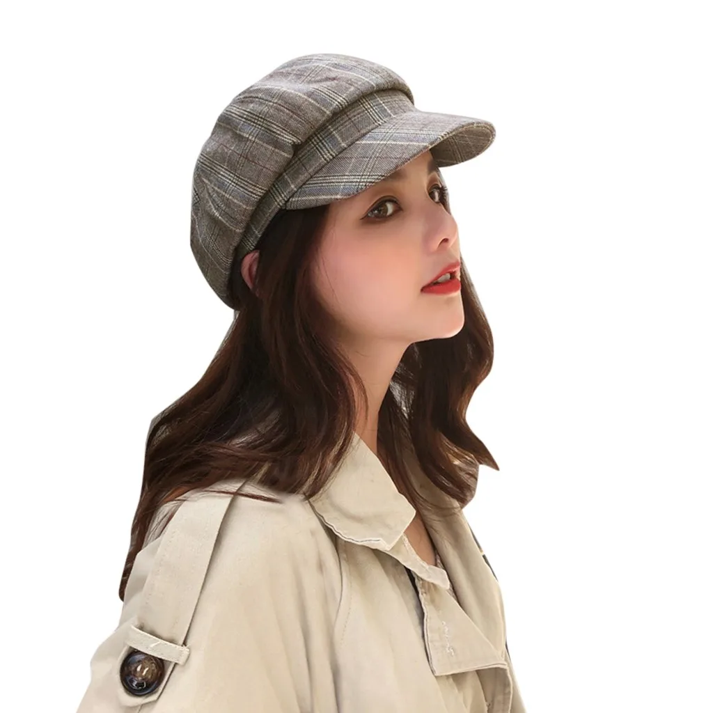 Зимняя винтажная женская зимняя клетчатая шапка Newsboy берет CapBerets