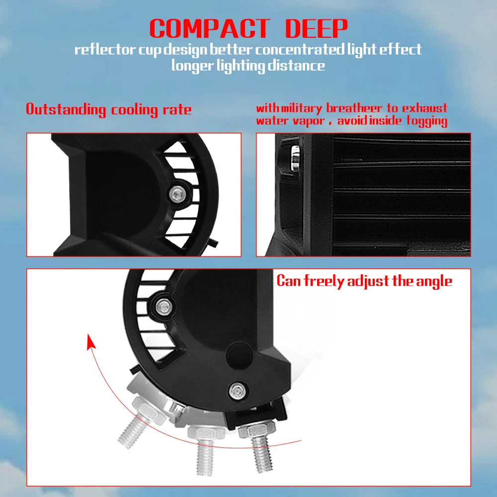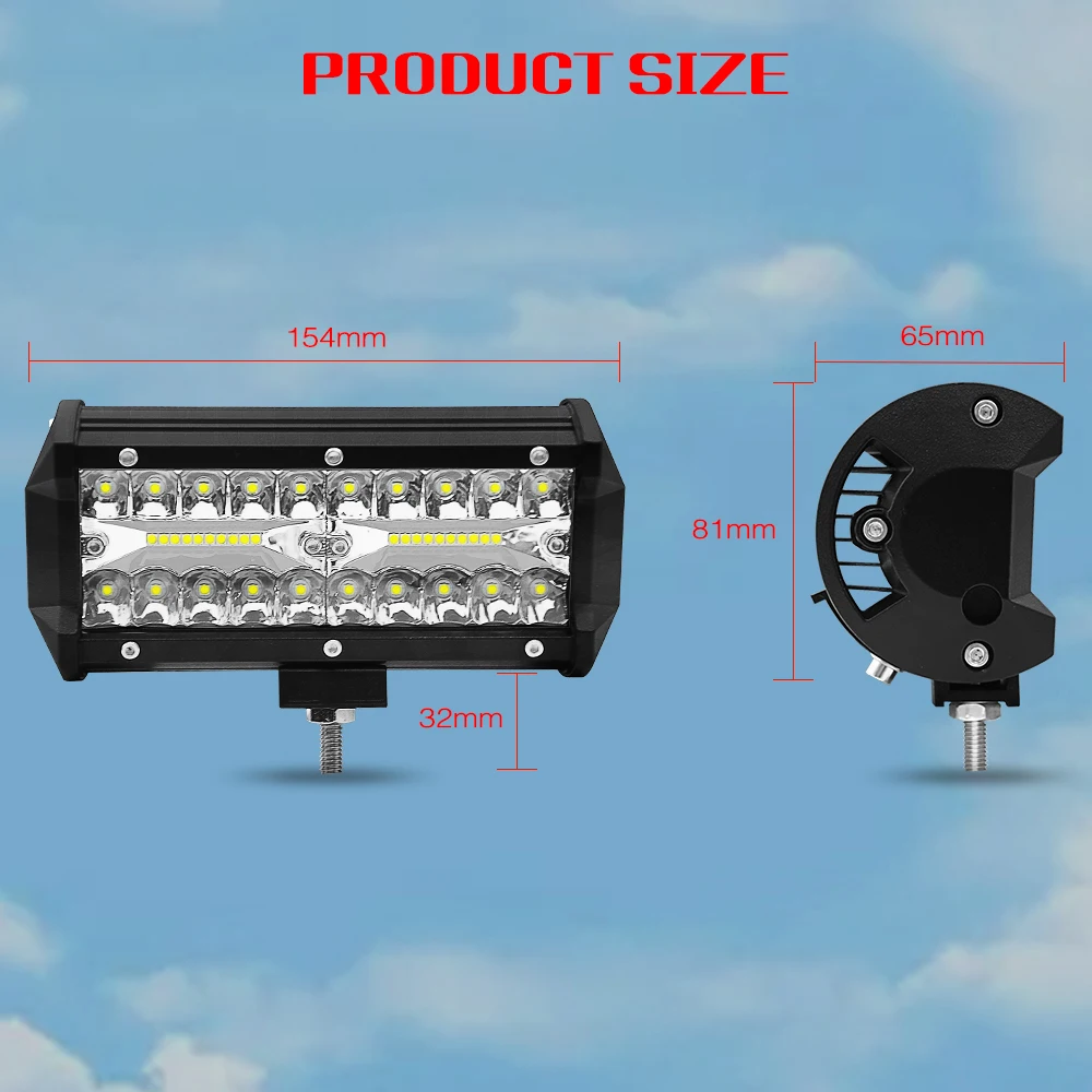Название продукта: 7-дюймовый 120 Вт Светодиодный светильник-полоса, рабочий светильник для внедорожных транспортных средств, светильник-полоса для крыши Ламповые бусины: Ламповые бусины Philips, 3 Вт/шт; Цветовая температура: 6000K; Яркость: 12000 лм; Мощность: 120 Вт; Количество чипов: 40 шт. * 3 Вт Мощный Philips светодиодный Материал: корпус из авиационного алюминиевого сплава, зеркало из поликарбоната, кронштейн из нержавеющей стали 304; Цвет: черный; Срок службы: >50000 ч; Напряжение: 9 ~ 30 В, постоянный ток Рабочая температура: низкая температура-40 °C ~ Высокая температура 85 °C; Принцип рассеивания тепла: авиационный алюминиевый сплав барьер рассеивания тепла Водонепроницаемость: IP68;
