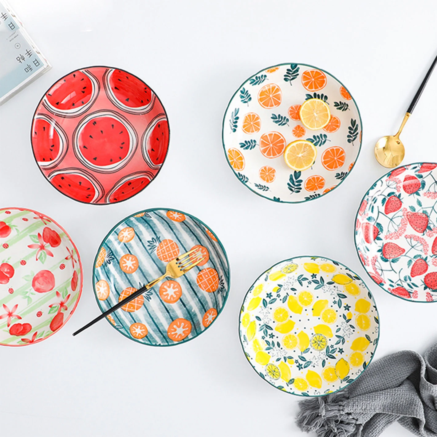 [Товар]: послеобеденный чай, керамическая тарелка, лимонная тарелка, фруктовая закуска, салат, десерт, горячее блюдо, глазурованный десерт, закуска, ресторанная тарелка, ужин, цветок [Материал]: керамика [Цвет приспособления]: желтый/красный [Размер]: диаметр 22 см [Посылка]: 1 * пустая полка