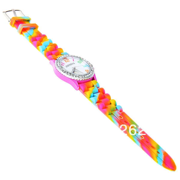 Новинка! Новинка Geneva радужные Кристальные Стразы силиконовый ремешок для часов