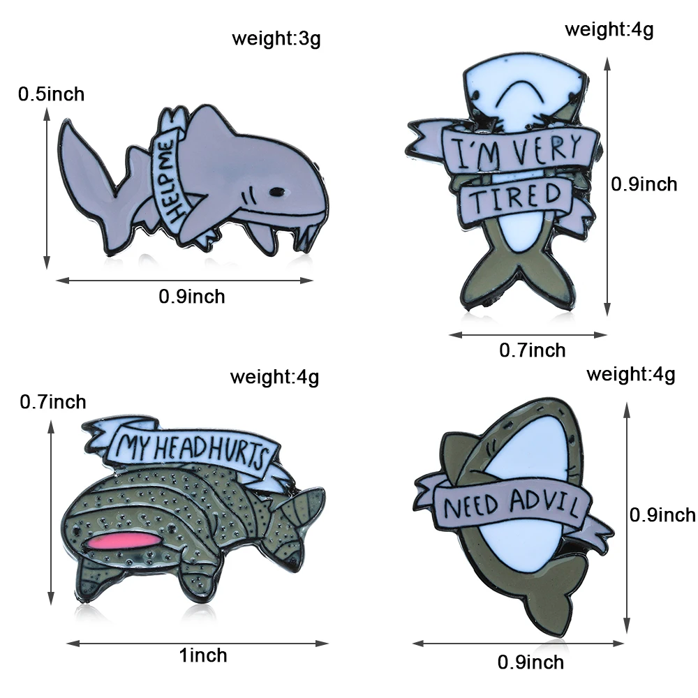 Милая серая эмалированная брошь в виде животного, эмалированная брошь в виде акул, рюкзак, джинсовый значок, подарки для детей