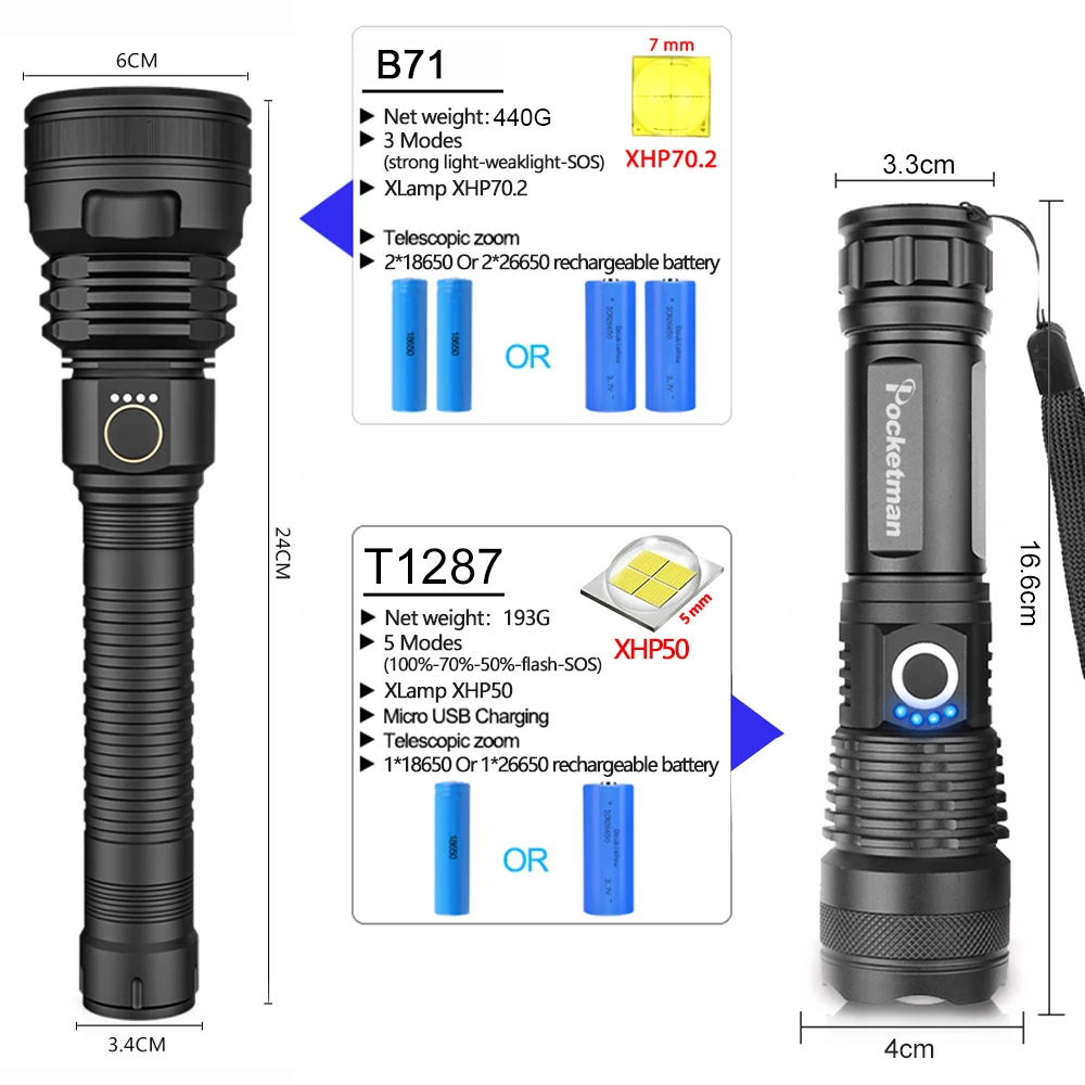 Самый мощный светодиодный светильник для вспышки USB Перезаряжаемый фонарь XHP50 XHP70 ручной светильник 26650 18650 батарея флэш-светильник