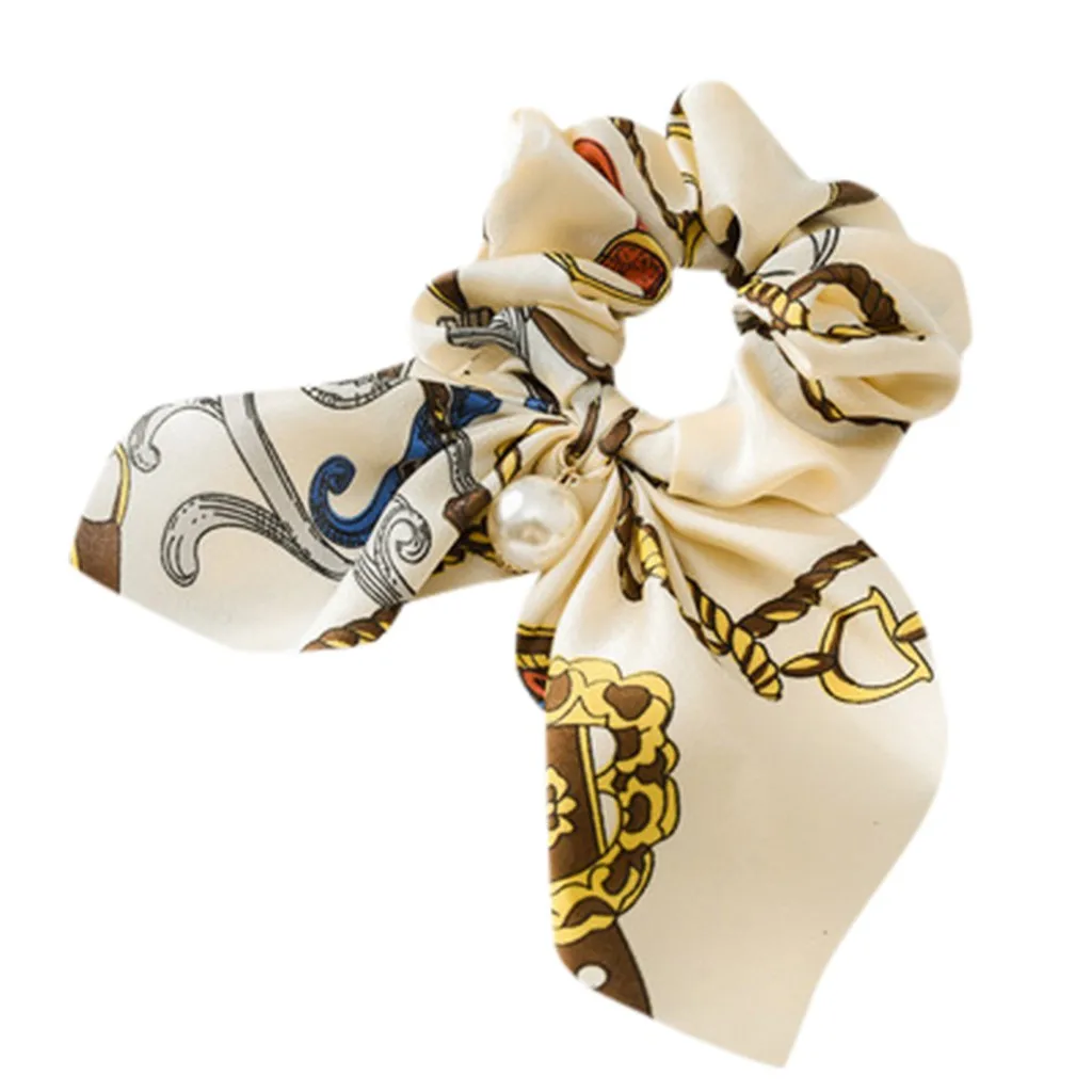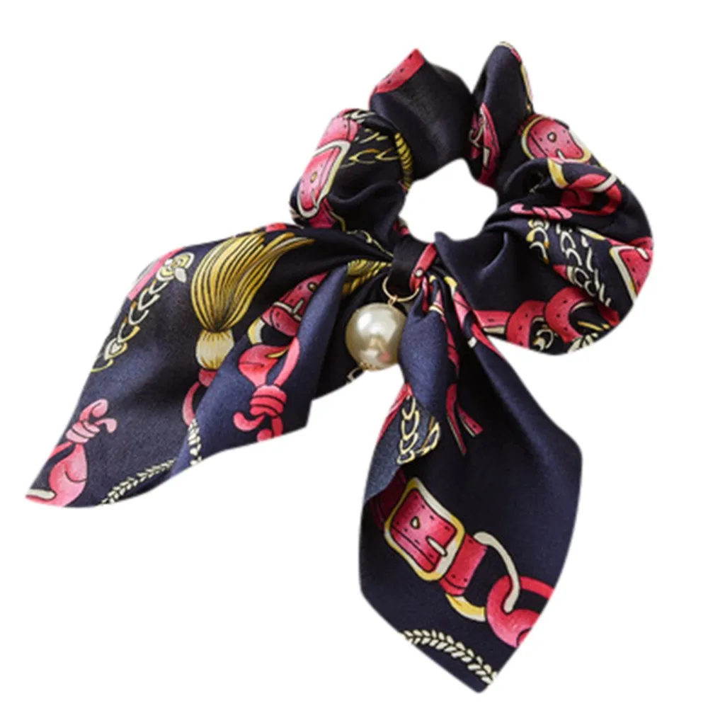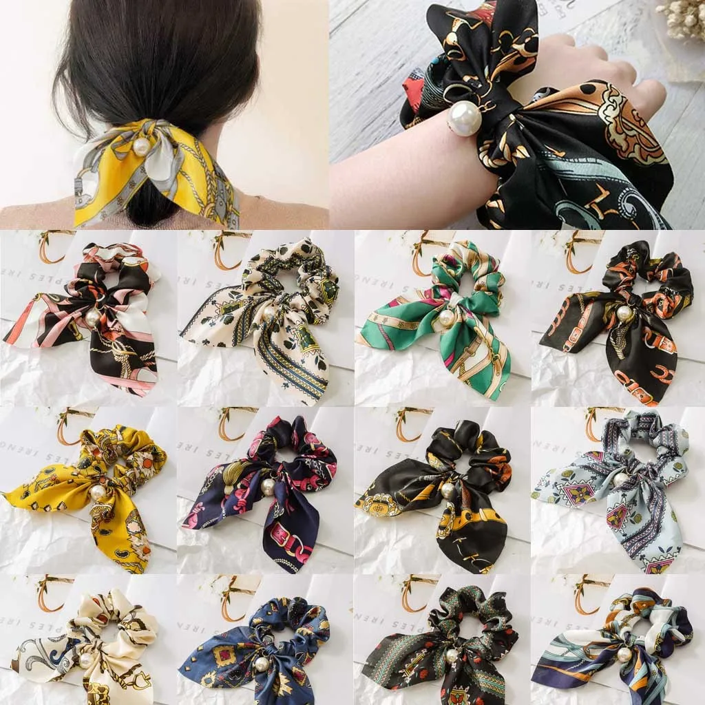 Женский новый жемчуг большой круг волос Веревка шелковый шарф волос кольцо, бант волос Веревка