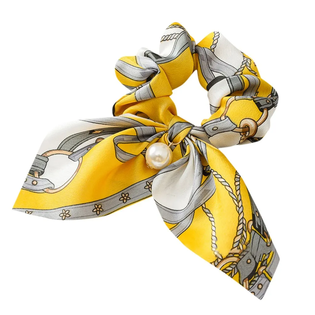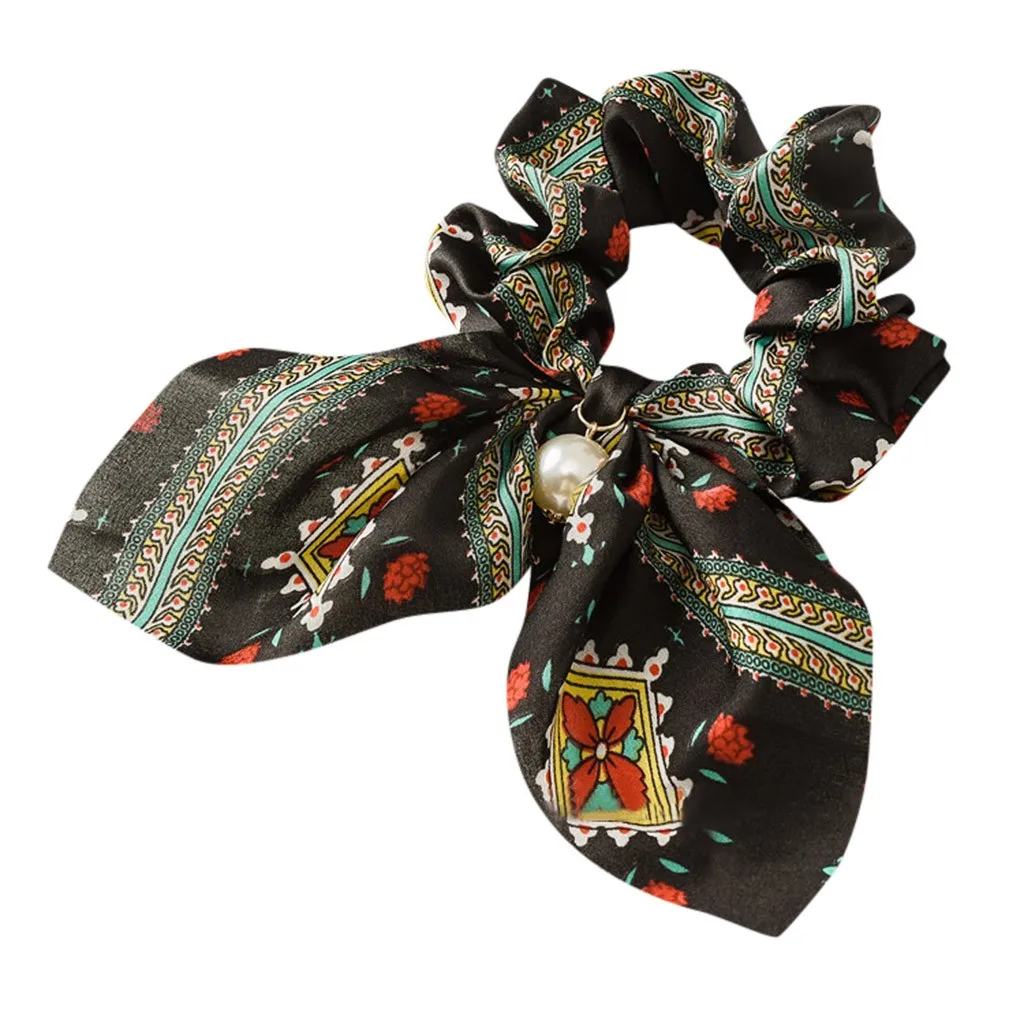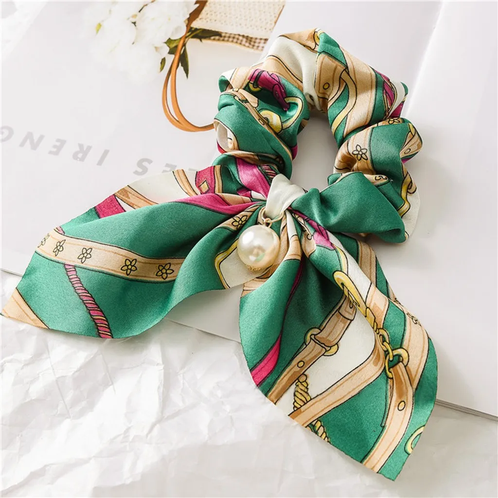 Женский новый жемчуг большой круг волос Веревка шелковый шарф волос кольцо, бант волос Веревка