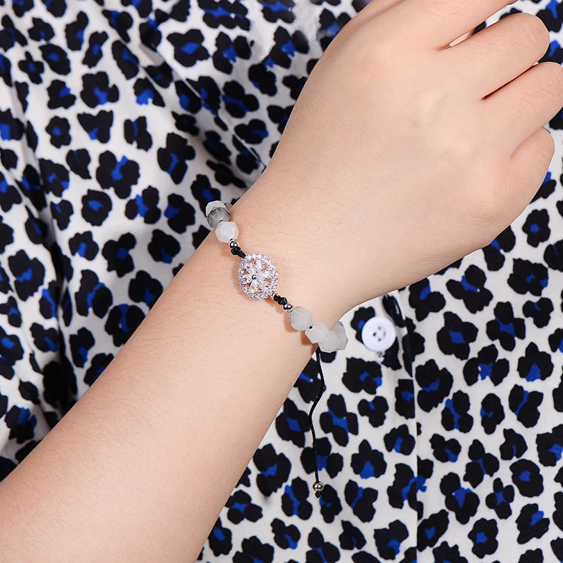 Имя:Женские плетеные браслеты ручной работы Neovivi, ограненные бусины из натурального камня, браслет с подвесками в виде цветка CZ, модные украшения для девочек, подарки