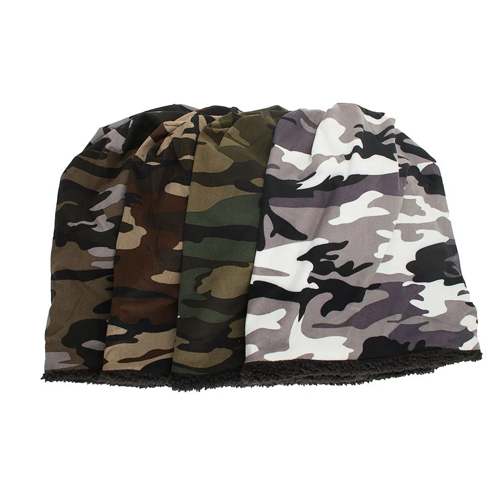 Женские и мужские теплые свободные камуфляжные вязаные крючком зимние шерстяные Лыжные шапки с черепом