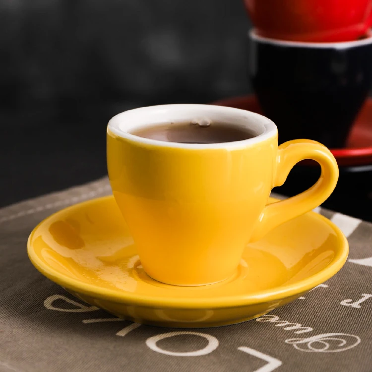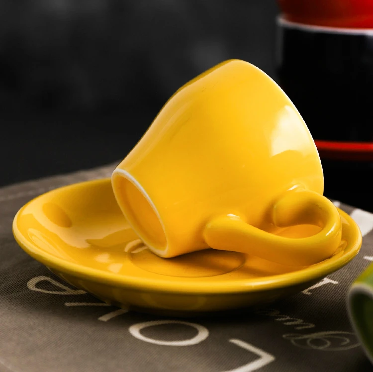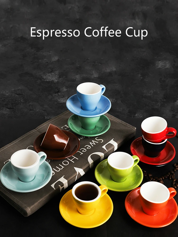 80 мл чашка для эспрессо Итальянский простота Цвет Керамика небольшой Ёмкость чашка с блюдцем Набор для ресторана, Кофе чашки с ложкой