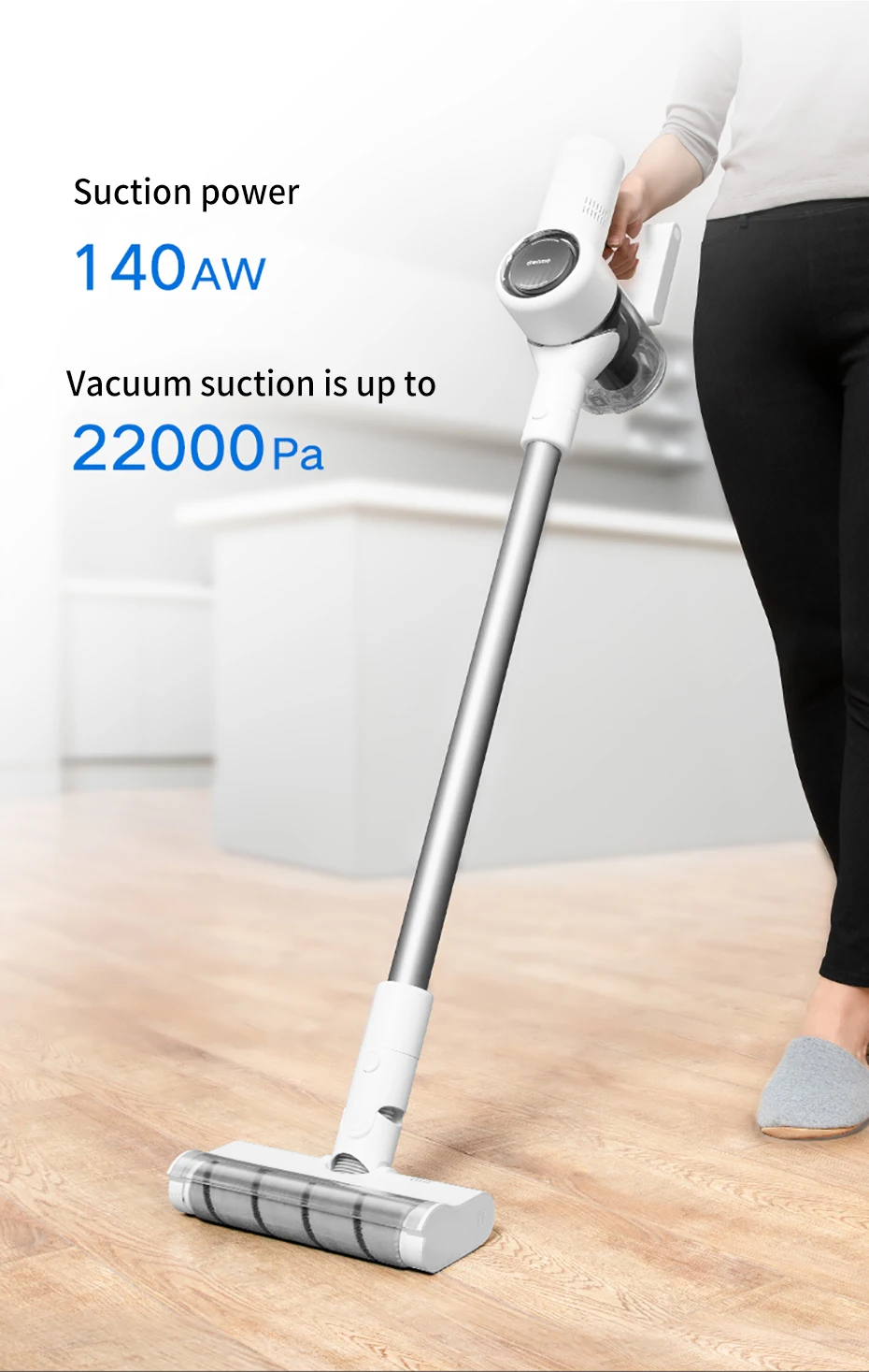 ● Мощный бесщеточный цифровой мотор производительность увеличена на 40%, вакуумное всасывание до 22000 па, Рабочая мощность 450 Вт, мощность всасывания 140AW