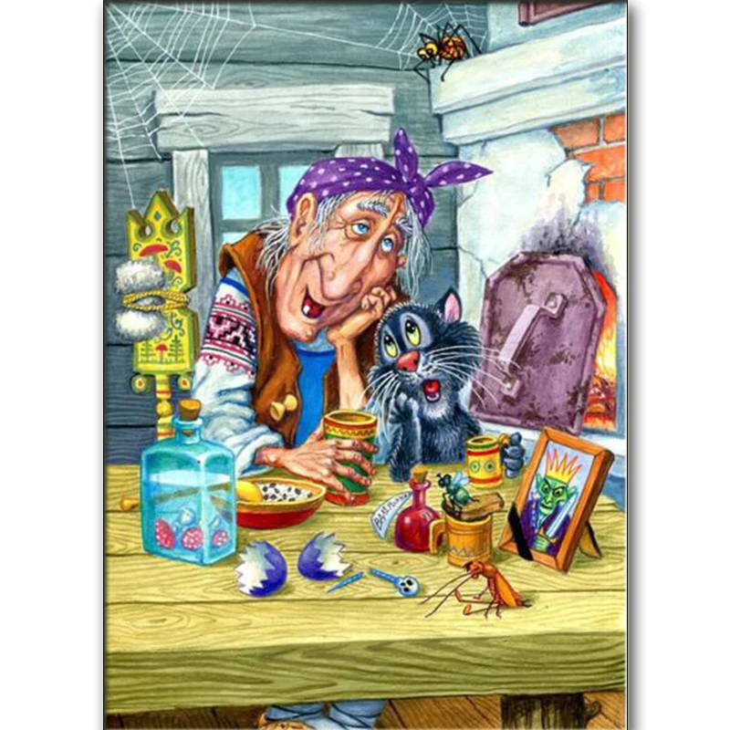 DIY handmade needlework diamond embroidery witch and cat rhinestone cross stitch mosaic diamond painting Art Home decoration