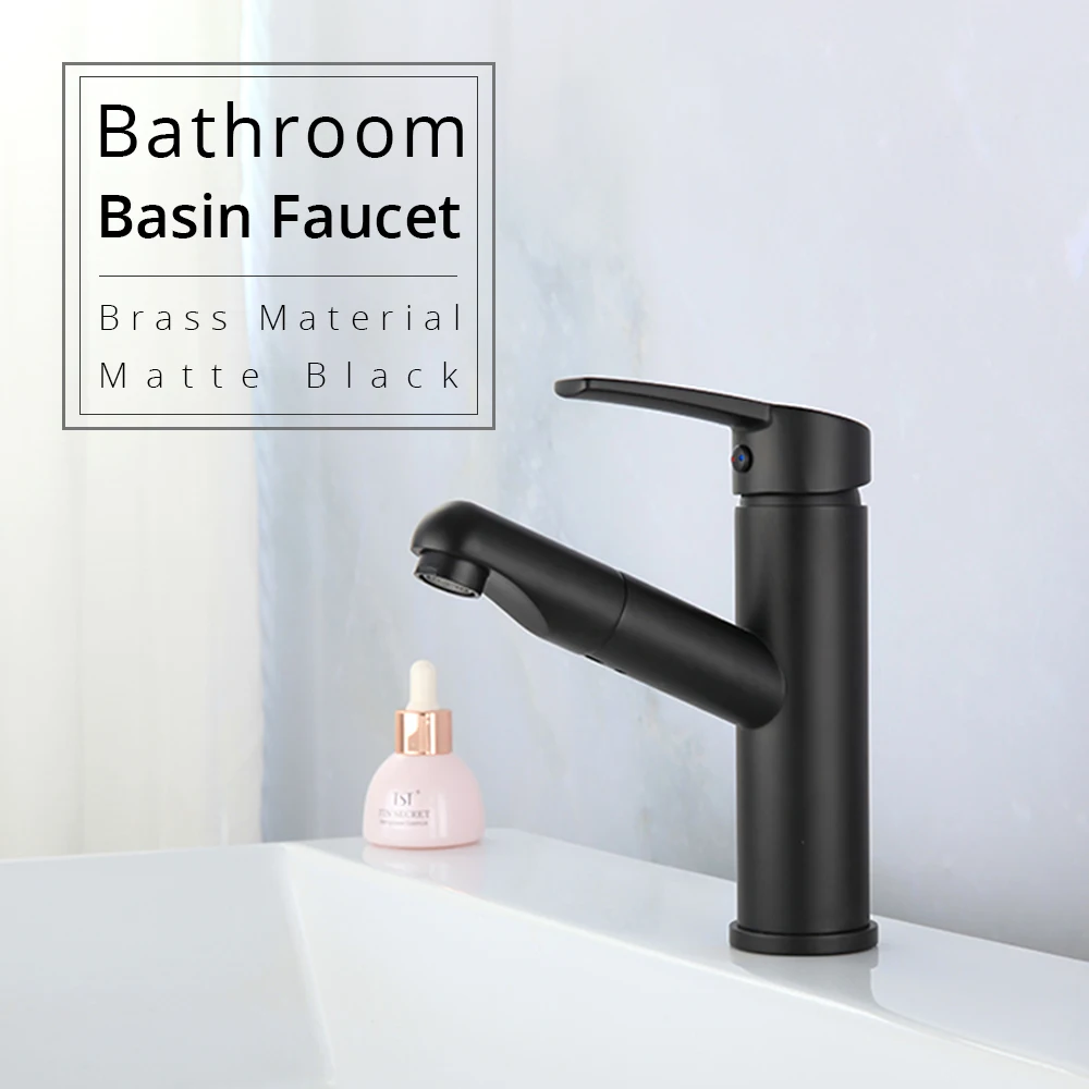 Прямая продажа с фабрики, оптовая продажа, современный полностью медный телескопический кран для ванной комнаты, черный кран для горячей и холодной раковины, кран для раковины для ванной комнаты