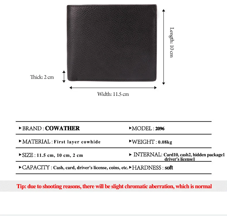 Уважаемый покупатель, мы принимаем Розничные, оптовые продажи, дропшиппинг надеемся, что вам понравится наш сервис, спасибо всем покупателям! Информация о товаре Название: кошелек из натуральной коровьей кожи Материал: натуральная телячья кожа Длина: 11,5 см Ширина: 10 см Цвет: черный Стиль: Модный элегантный винтажный Для: мужчин Изысканная ручная работа Теплые советы: 1. Как светильник для съемки, угол и цвет дисплеев, объектов и фотографий, может быть некоторые различия! За основу принимается фактический вид товара 2. При самостоятельном измерении предусматривайте погрешность в 1-2см. Если Вам это не подходит –