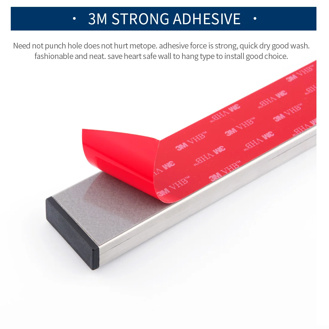 1. Изготовлен из высококачественного 304 материала из нержавеющей стали, прочный и долговечный. 2,3 м самоклеящаяся на задней панели с завязывающимися бретельками может уменьшить сложная установка и защитить ваши руки от боли. Перед установкой сначала очистите стену сухой тканью, а затем разорвите клей 3 м. 3. Простой внешний вид и сильный магнетизм, не только добавляют красоту кухни, но и удерживают большинство металлических ножей, ножниц или незакрепленных тел. 4. В комплект входит: 1 * держатель ножа с магнитной полосой