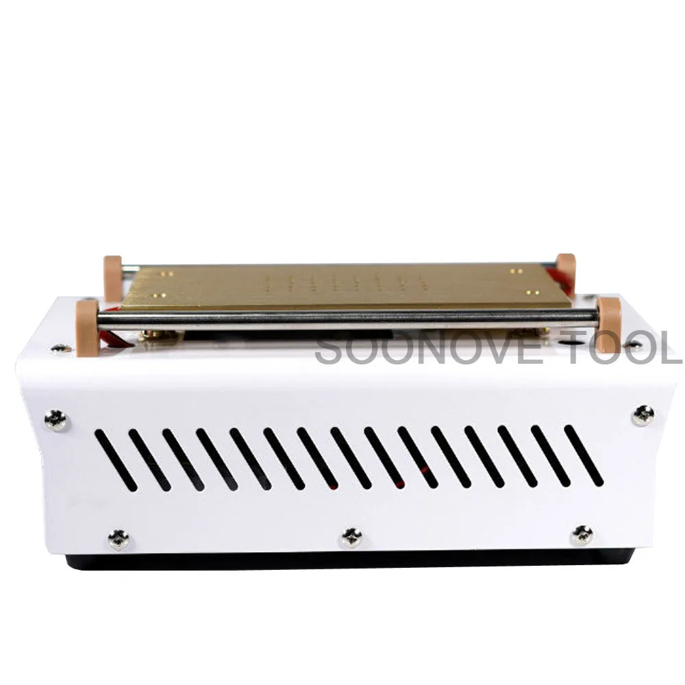 Описание: Отдельная машина подходит для сотовых телефонов длиной 10 ~ 17 см (для lcds до 7 дюймов). Устройство используется для разделения ЖК-дисплея и сенсорного экрана Apple, Samsung, HTC ,Huawei, LG,Xiaomi Oneplus, а также других смартфонов. Если ЖК-дисплей все еще работает хорошо, вам просто нужно заменить сенсорный экран. Управление: Поместите ваш ЖК-дисплей с сенсорным экраном на металлическую пластину, ЖК-дисплей сверху; Установите 4 ручки, чтобы сохранить сенсорный экран на металлической пластине стабильно; Включите устройство и подождите, пока металлическая пластина станет на 80-100 градусов (не может превышать 100 градусов); Начните отделять ЖК-экран от стекла сердцевиной, затем вправо и влево перемещайте сердцевину между ЖК-дисплеем и стеклом, пожалуйста, обратите внимание, что вы должны использовать мягкую мощность и держать ядро на поверхности ЖК-дисплея, так что это позволит избежать повреждения сенсорного экрана. Особенности: Встроенный насос не нужен зажим для экрана Rex-c100 продвинутый tep-контроллер. Он может одновременно отображать как установочную температуру, так и фактическую температуру. Тепла площадь: 190x110 мм воздух материал. Идеально подходит для всех 7-ми дюймового экрана. Входное напряжение: 220 В Подходящий Размер: 7 дюймов или ниже Рабочая зона: 190*110 мм