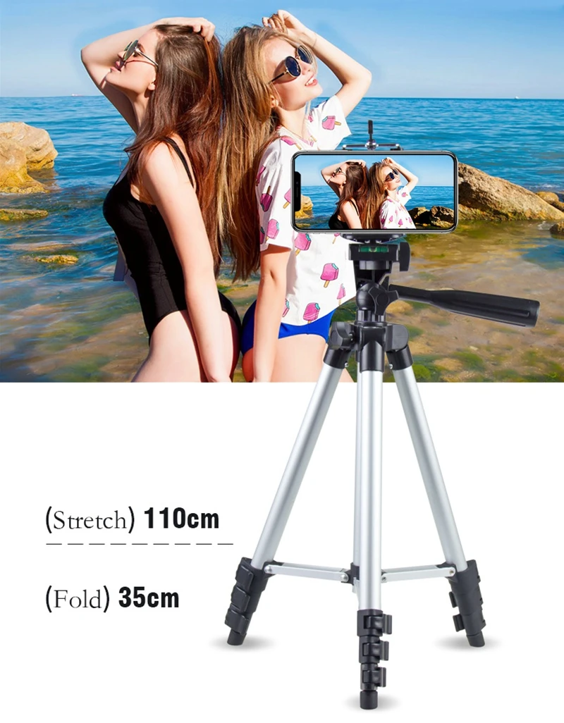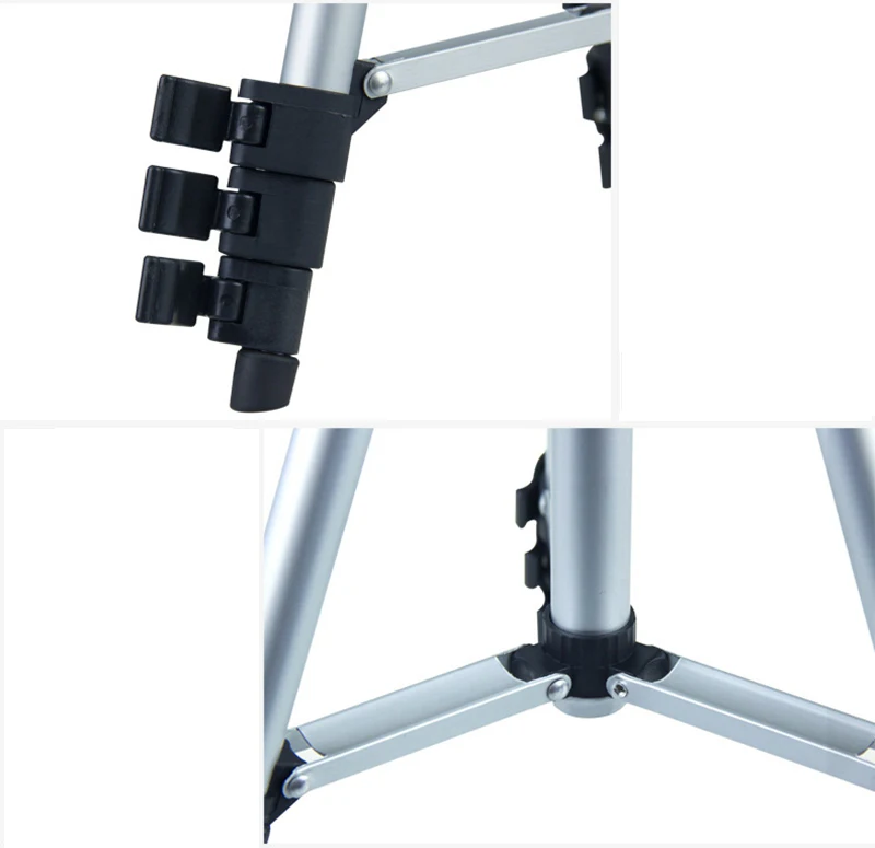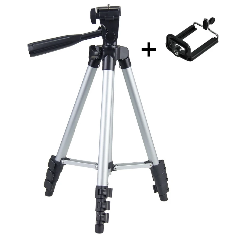 Материал: Алюминий Цвет: как на картинке Размер винта: 1/4" Размер штатива: 35 см (в сложенном виде); 110 см (растягивается) Комплектация: 1 шт. штативы с зажимом для телефона
