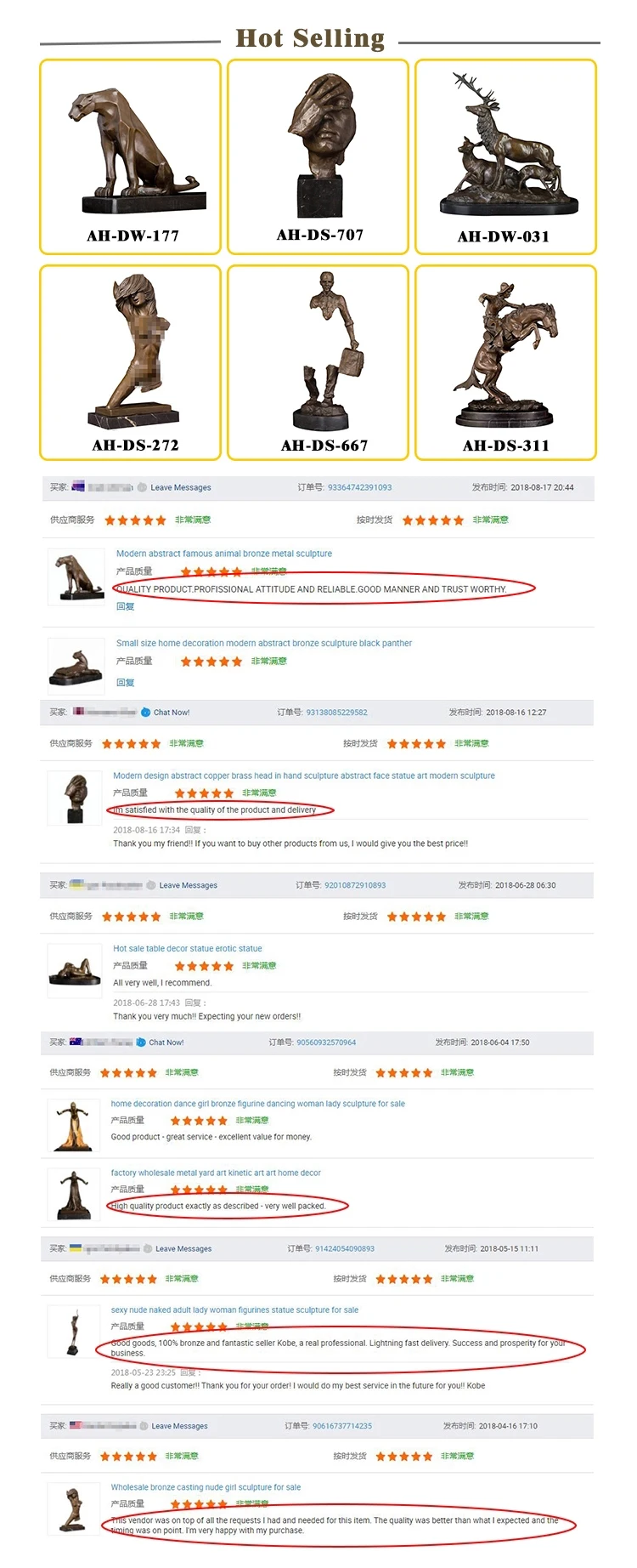 Наше преимущество • 7 дней доставки-наша фабрика является профессиональным производителем изделий из бронзового металла, бронзовых подарочных изделий и бронзового художественного декора. В настоящее время у нас есть огромный запас более 500 штук, из которых вы можете выбрать. Мы постоянно добавляем дополнительные модели в наш ассортимент. Каждая модель либо в наличии и доступна для срочной покупки (отправляется в течение 7 дней с момента заказа), либо может быть произведена довольно быстро, так как мы имеем формы для каждой модели. • 15 дней возврата денег-мы уверены, что вы будете в восторге от вашей покупки/s, что мы предлагаем вам нашу железную гарантию-вы можете вернуть свою покупку для полного возврата стоимости покупки если вы не удовлетворены по какой-либо причине. Просто сообщите нам о своем желании отменить заказ и вернуть нам ваш продукт-никаких проблем и никаких объяснений не требуется. • Горячая линия + 86 15831244767-консультационная Горячая линия, пн-пт. 8 ам-6 ПМ. (Китайское время) мы здесь, чтобы помочь, и наши сотрудники по обслуживанию клиентов говорят на английском языке! Пожалуйста, не стесняйтесь позвонить на нашу горячую линию с любыми запросами о наших продуктах или услугах. • Популярные контактные варианты-Пожалуйста, обратите внимание на наши номера Tradermanger и whatsapp и не стесняйтесь обращаться к нам с помощью этих средств с любыми запросами. Ватс АПП: 0086 15831244767 • Безопасные платежные услуги-мы принимаем банковские переводы, paypal, Western Union, Visa и Trade Assurance. • Заказы на заказ-да! Мы принимаем заказы на проектирование, копирование и производство бронзовых моделей в соответствии с вашими особыми требованиями. 1. Отправьте нам свою дизайнерскую картинку и требования и позвольте нашим скульпторам произвести глиняную модель для вашего утверждения. 2. Клиентам, которые уже обладают моделями или образцами, предлагается отправить их нам, чтобы разрешить точный кремний Будут сделаны впечатления (более короткие сроки доставки и более высокая точность.) 3. Вы можете быть абсолютно уверены, что оригинальные модели, отправленные к нам, будут в полной безопасности с нами и возвращены к вам в Точно в том же состоянии, что и при получении. 4. Если у вас нет фотографий или эскизов или оригинальных моделей, просто обрисуйте вашу идею и позвольте нам произвести подходящий Дизайн и затем лепить модель на ваше внимание. Вопросы и ответы 1. Можно ли изготовить бронзовые статуи на заказ для меня? Да. Мы профессиональная бронзовая скульптура собаки литейная и очень хороша в обслуживании на заказ. 1) индивидуальный сервис-Размер 2) индивидуальный сервис-патина (цвет) Есть несколько популярных патинов (цветов) для бронзовой статуи. Если вам не нравится патина на фото, свяжитесь с нами для получения дополнительной информации. 3) индивидуальный сервис-дизайн Если у вас уже есть дизайн, который вы хотите, вы можете отправить его нам, вместе с вашими запросами о его размере и патине. Мы сделаем для вас предложение в течение 24 часов 2. Как очистить и сохранить бронзовую скульптуру? 1) Удалите пыль влажной тряпкой. Не используйте металлические предметы или проволочные щетки для чистки скульптуры. Не наносите абразивы или очищающие средства, которые могут поцарапать поверхность. 2) зуд-неабразивный очиститель. Используйте для удаления стойких пятен. Zud очищае