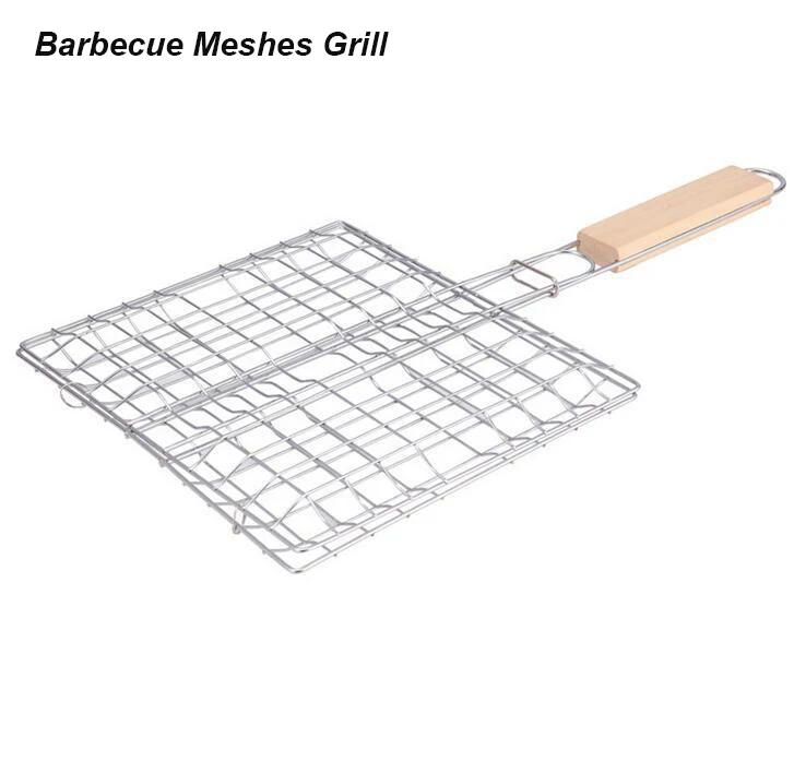 Нержавеющая сталь портативный барбекю гриль с деревянной ручкой барбекю Гриль Корзина для овощного стейка креветки барбекю инструменты аксессуары