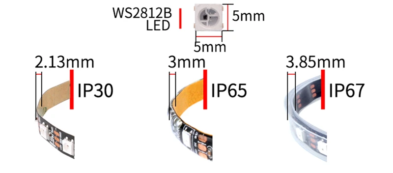 1. Светодиодный Тип: 5050SMD со встроеннымIC WS2812B(1 IC контроль 1 светодиодный)