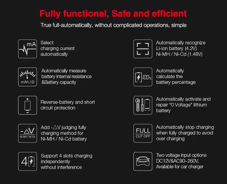 MiBoxer C4 Battery Smart Charger Double AA Max 2.5A/Slot Super Fast 18650 14500 26650 Charger discharge Charge function