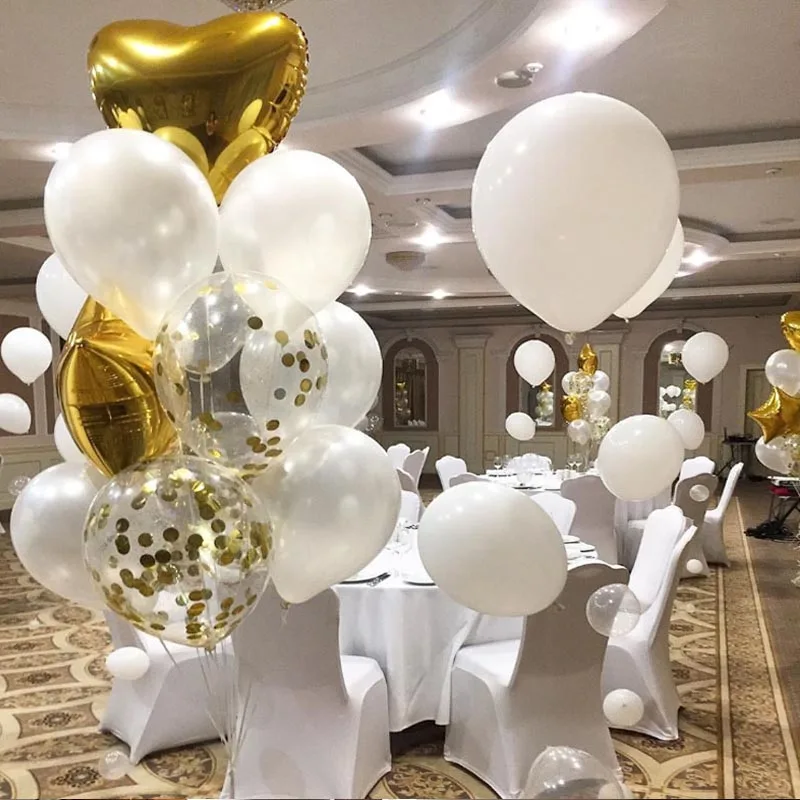 Информация о товаре: Комплект гирлянды с золотыми и белыми воздушными шарами, включая: 2 шт., белый шар 18 дюймов 20 штук 12 дюймов Золотой металлический шар 20 штук 10 дюймов Золотой металлический шар 25 шт. 10 дюймов белый латексный воздушный шар 25 шт. 5-дюймовый белый латексный воздушный шар 10 шт. 10-дюймовый розовый латексный шар 1 шт. баллонные точки для клея 1 шт. 5 м цепочка для воздушных шаров . Идеальные вечерние украшения: Этот комплект гирлянды с воздушными шарами состоит в основном из белого и золотого цветов, он является символом элеганчности, чистоты и благородства. Это, безусловно, лучший выбор для вашего свадебного декора, а также отлично подходит для свадебного душа, дня рождения, детского душа, юбилея и других мероприятий. . Легко собрать-просто надуть шар, застегнуть узел в отверстие арки воздушного шара, подобрать разные цвета, надуть различные размеры, как на нашей фотографии, так что гирлянда будет выглядеть великолепно. . Высокое качество: эти воздушные шары изготовлены из высококачественного латексного материала, нетоксичного, безопасного использования, антикоррозионного и многоразового использования, достаточно прочного и долговечного, чтобы надуть