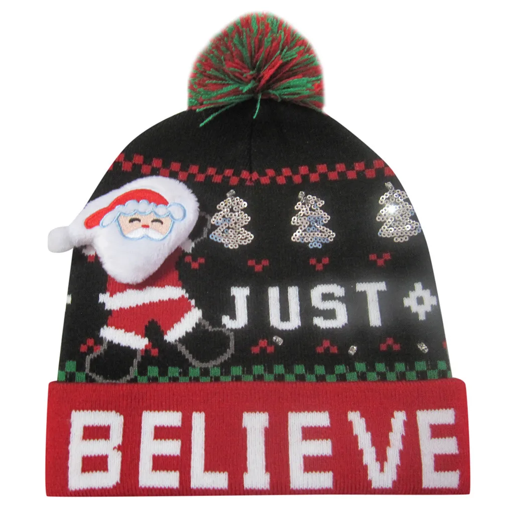 Один размер для MOSTS: Этот светодиодный Рождественский вязаный головной убор подходит для большинства мальчиков, девочек, мужчин и женщин с высокой эластичностью