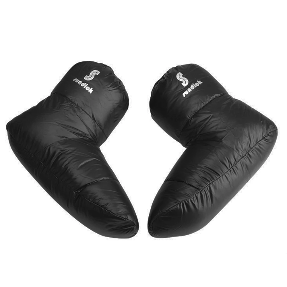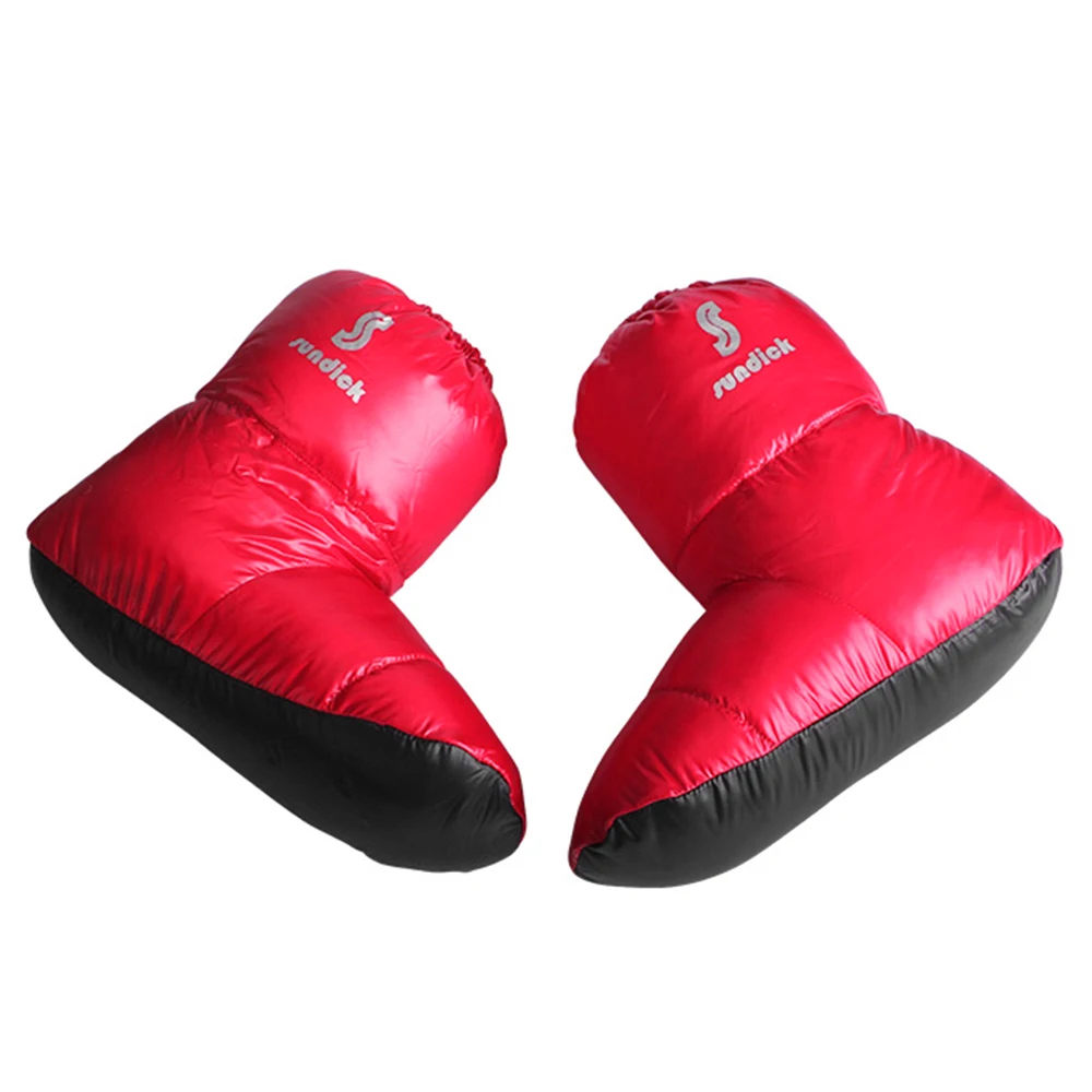 90% тонкая подкладка из утиного пуха, пушистая и теплая, нейлоновая оболочка высокой плотности и эластичные ноги, чтобы сохранить воду и ветер в холодную зиму. Отличные тапочки для наружного и внутреннего использования.