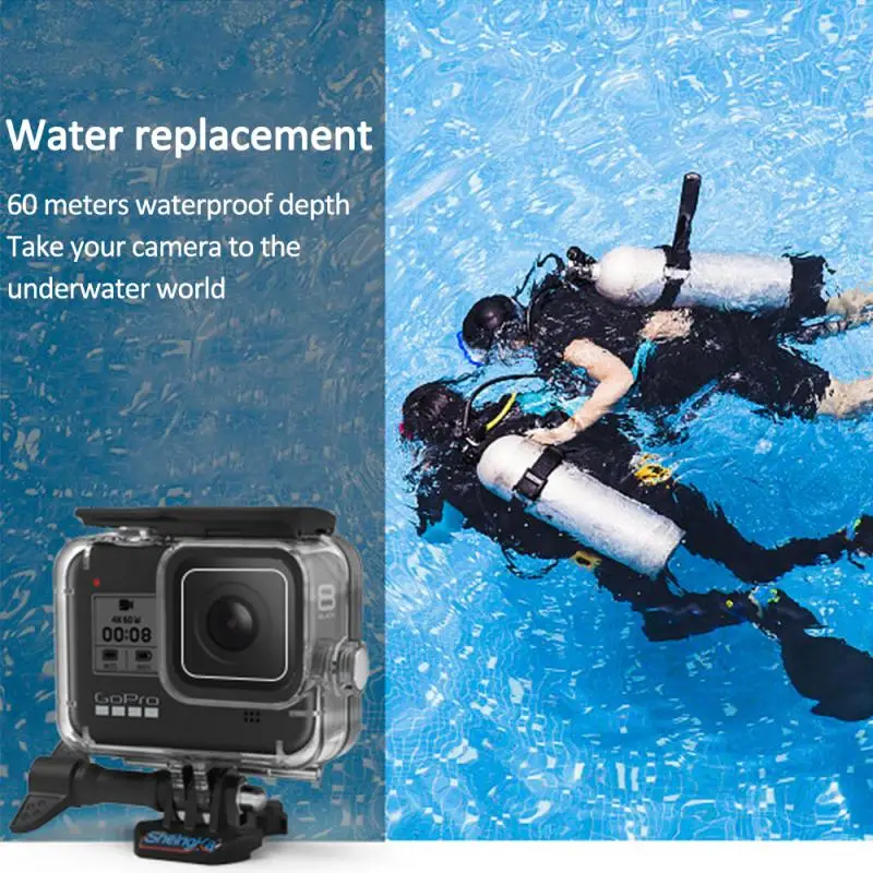 Задняя крышка высокой четкости и плоское стекло объектива: прозрачная задняя крышка и плоское стекло объектива с высоким коэффициентом пропускания этот водонепроницаемый чехол GoPro Hero 8 позволяет видеть изображение высокой четкости с GoPro под водой.