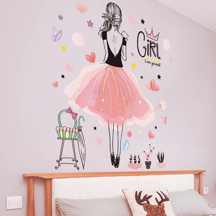 3D домашний мультфильм фея девушка Декор стены Бумага наклейки бабочки цветы Мура обои s гостиная спальня DIY комнаты плакат дом