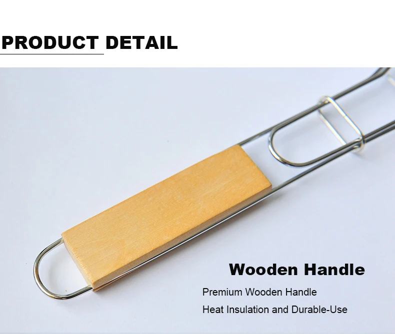 1 шт. портативная корзина для барбекю из нержавеющей стали с деревянной ручкой для рыбы, овощного стейка, креветок, принадлежности для барбекю