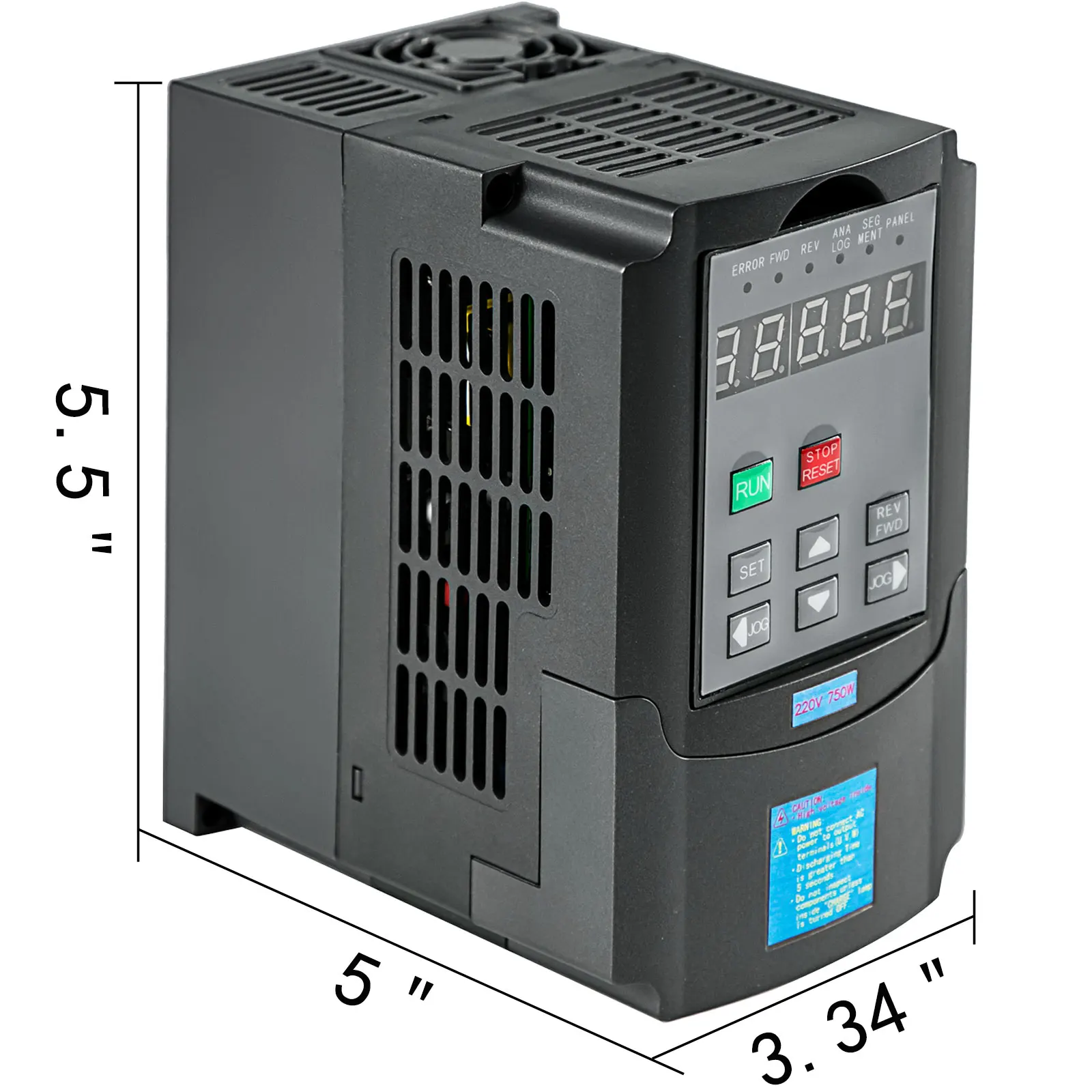 Технические характеристики Выходная мощность: 0,75 кВт Материал: пластик Номинальная частота: 50 Гц/60 Гц Диапазон выходной частоты: 0 ~ 650 Гц Вход Диапазон напряжения: однофазный (1 фаза) 220V ± 15% Выход Диапазон напряжения: 3 фазы 220V ± 15% Способ управления: векторное управление (SVC) V/F Основная функция: контроль и регулировка скорости двигателя переменного тока Размер изделия: 4,5 (L)x3(W)x5.5(H) дюймов