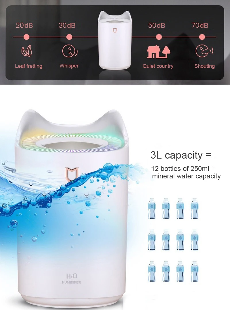 Материал: АБС + ПП Емкость резервуара для воды: 3000 мл Количество распылителя: 180 ~ 210 мл/ч Номинальная мощность: 3,5 ~ 4 Вт Входной ток: 1A Входное напряжение: DC5V Разъем: Micro-USB Применение в помещении: около 20 ~ 30 ㎡