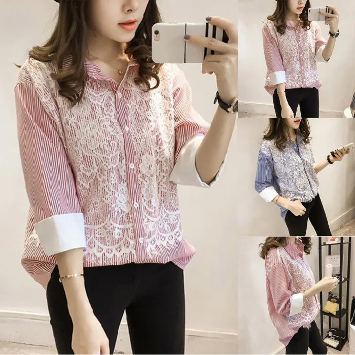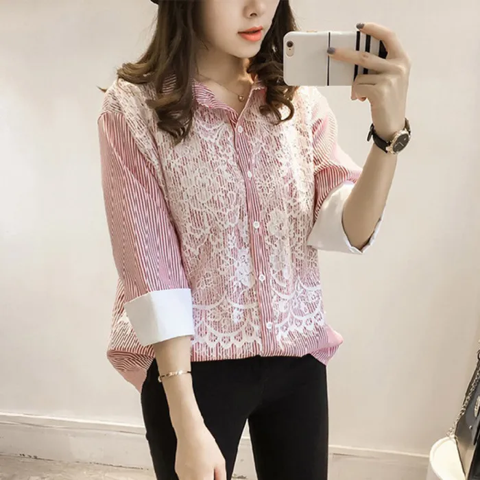 Тип одежды: Женская кружевная рубашка с длинным рукавом с отворотом свободные офисные OL вечерние базовые Топы