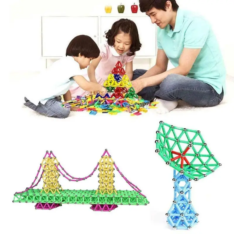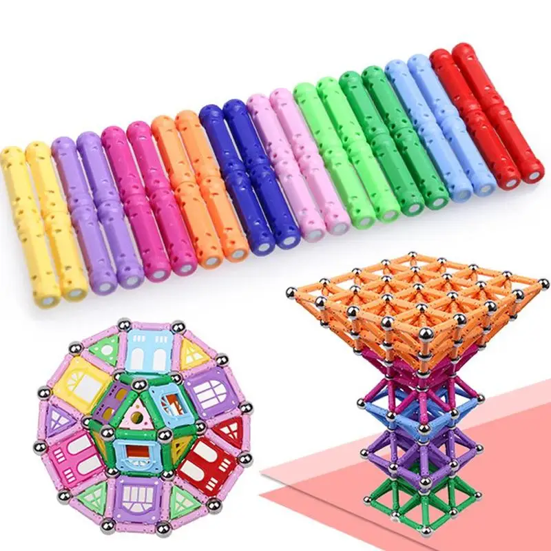 107 шт. Магнитный строительный конструктор из палочек, Набор детских пазлов, магнитные полосы, магнитные бусины, развивающая игрушка для детей