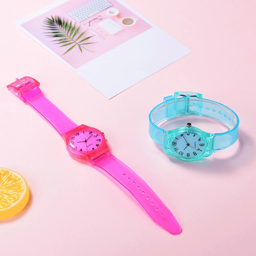 Детские яркие цвета большие цифры Круглый Циферблат силиконовый ремешок кварцевые наручные часы
