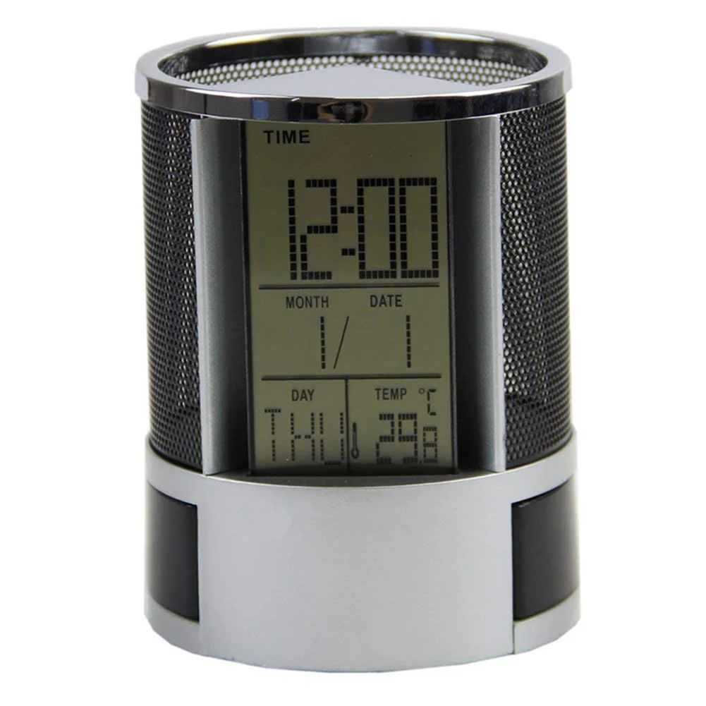 Офисный ЖК-будильник Отображение времени и температуры ручка настольный держатель для карандашей Органайзер